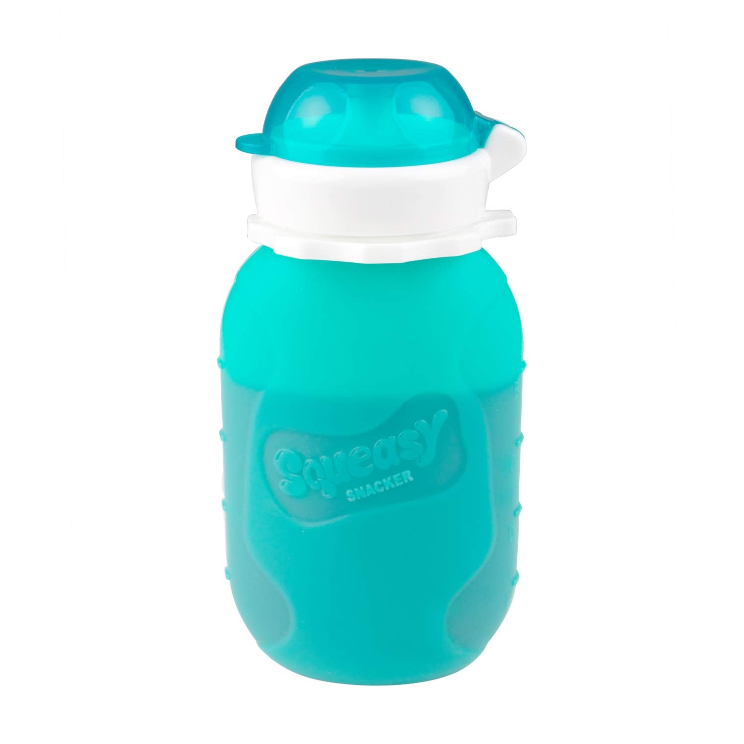 Aqua 6 oz Squeasy Snacker Spill Proof Silicone Reusable Food Pouch - for Both Soft Foods and Liquids - Water, Apple Sauce, Yogurt, Smoothies, Baby Food - Dishwasher Safe