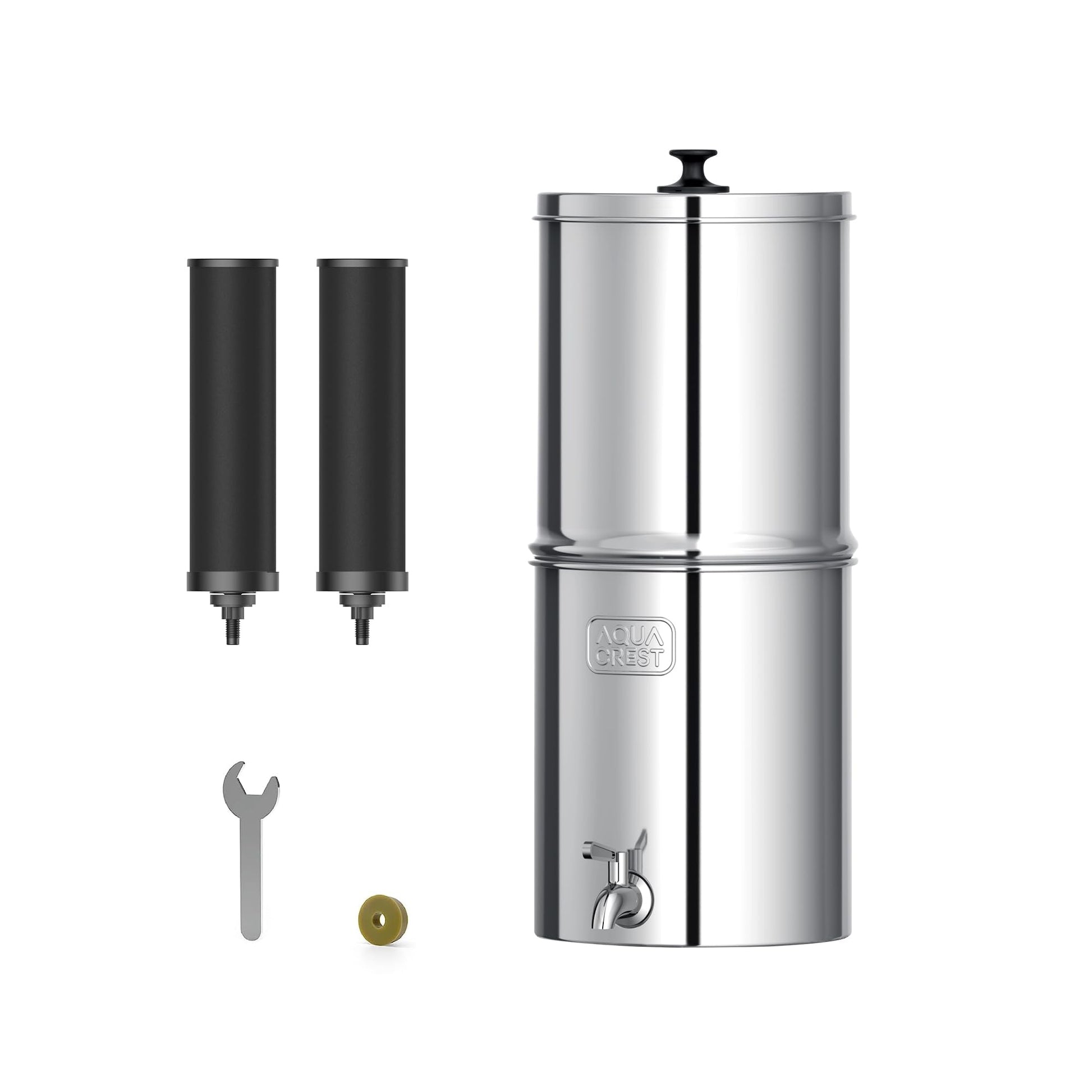 AQUA CREST Gravity Water Filter System, NSF/ANSI 42&372 Certified Black Carbon Filters, Reduce Lead and Up to 99% Chlorine, 2.25G, for Home, Camping, RVing, Off-Grid, Emergencies, AQ-TN-A