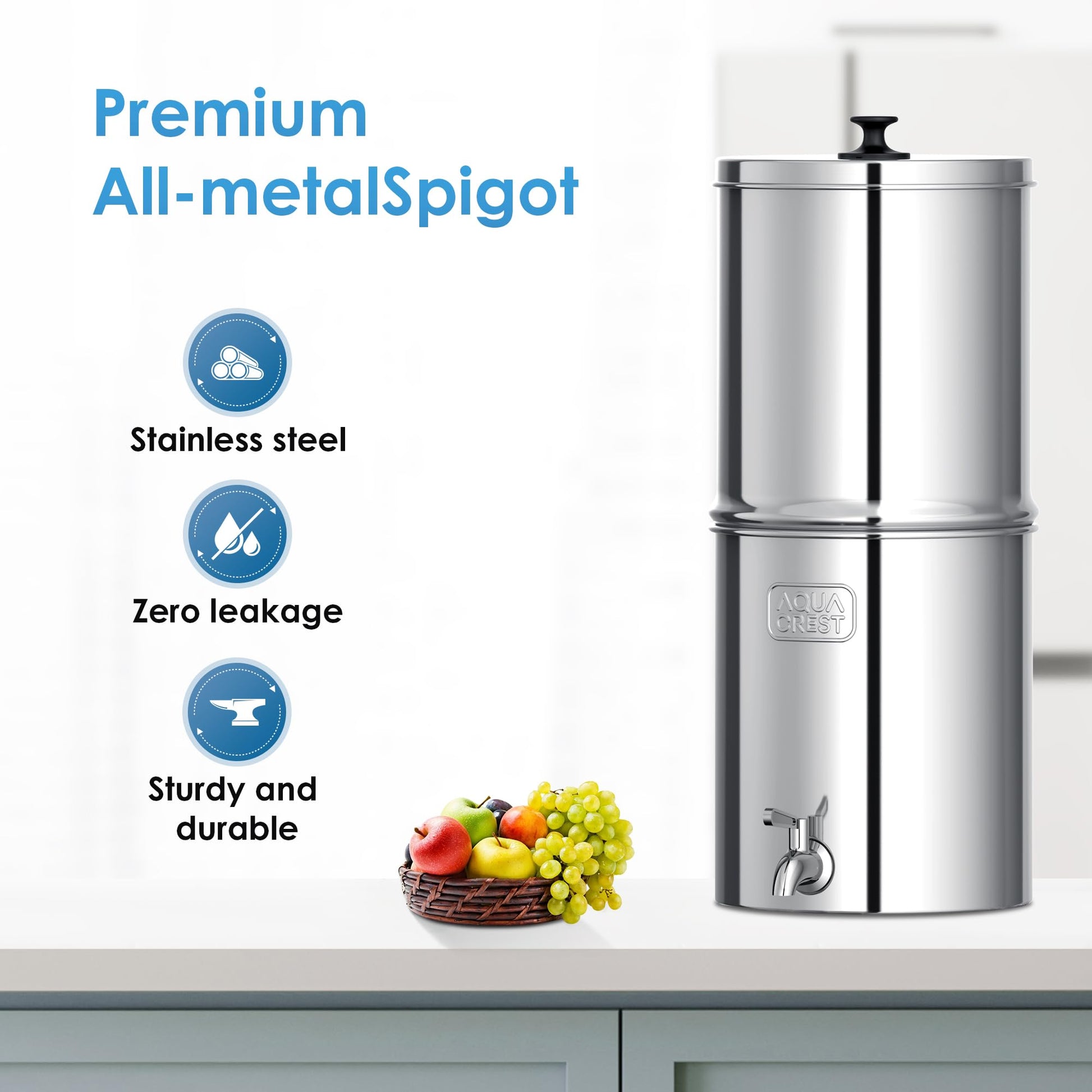 • [Stainless-steel bundle] Made from 304 food-grade stainless steel, this water filtration system is sturdy and leak-proof. It also features a premium all-metal spigot for more durability and sturdiness.