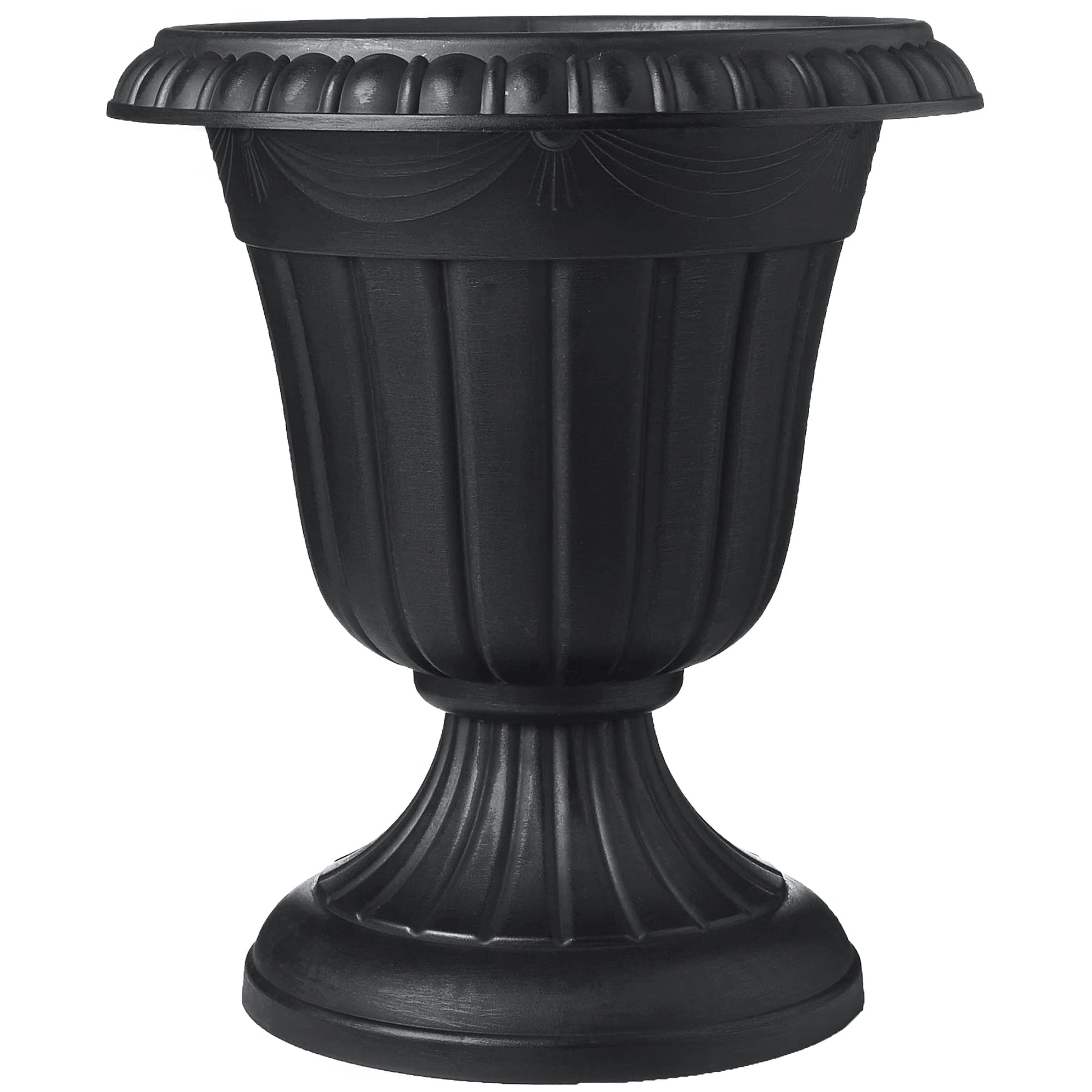 Arcadia Garden Products PL10BK Classic Traditional Plastic Urn Planter Indoor/Outdoor, 15" x 13", Black