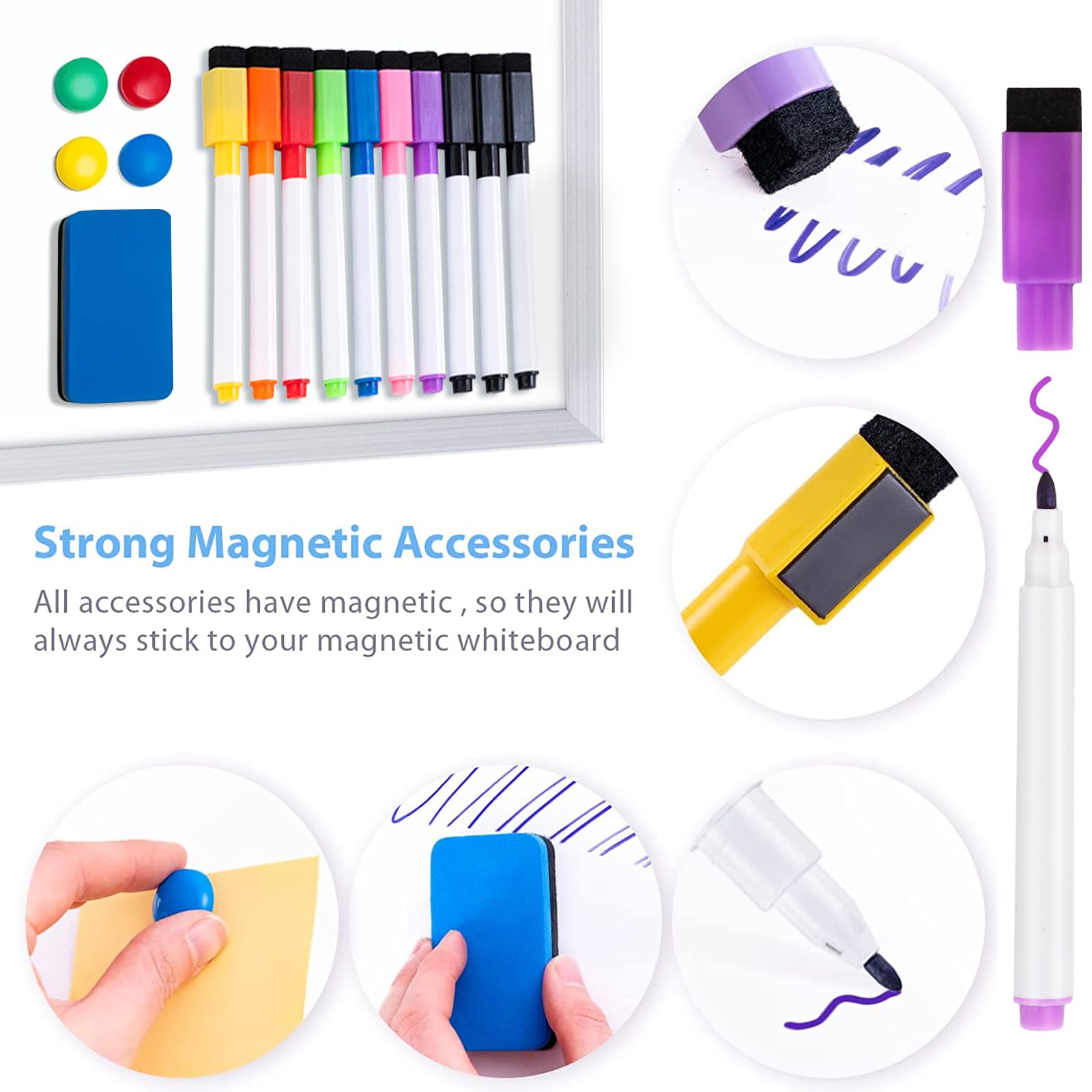 • Super Value Dry Erase Board Set: ARCOBIS weekly calendar with stand comes with 10 magnetic dry erase markers, 4 magnetic piece, 1 dry eraser. This small whiteboard is a great size for office desktop, space-limited tables, and kitchen counters. The portable design makes it easy to change placement as you like.
