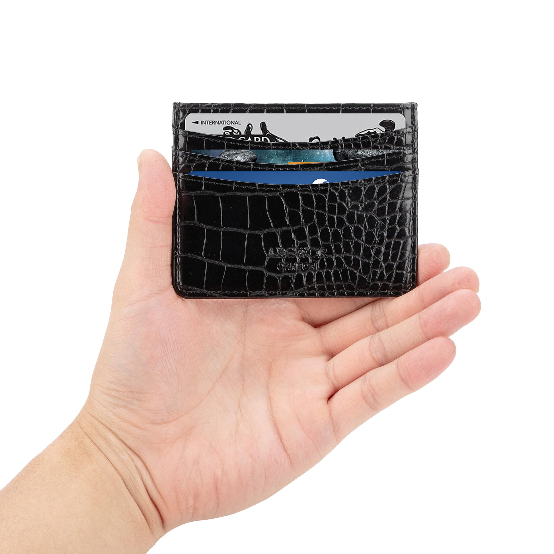 • Horizontal: 4 card slots, 1 ID window and 1 slip pocket; Vertical: 6 card slots, 1 ID window and 1 slip pocket