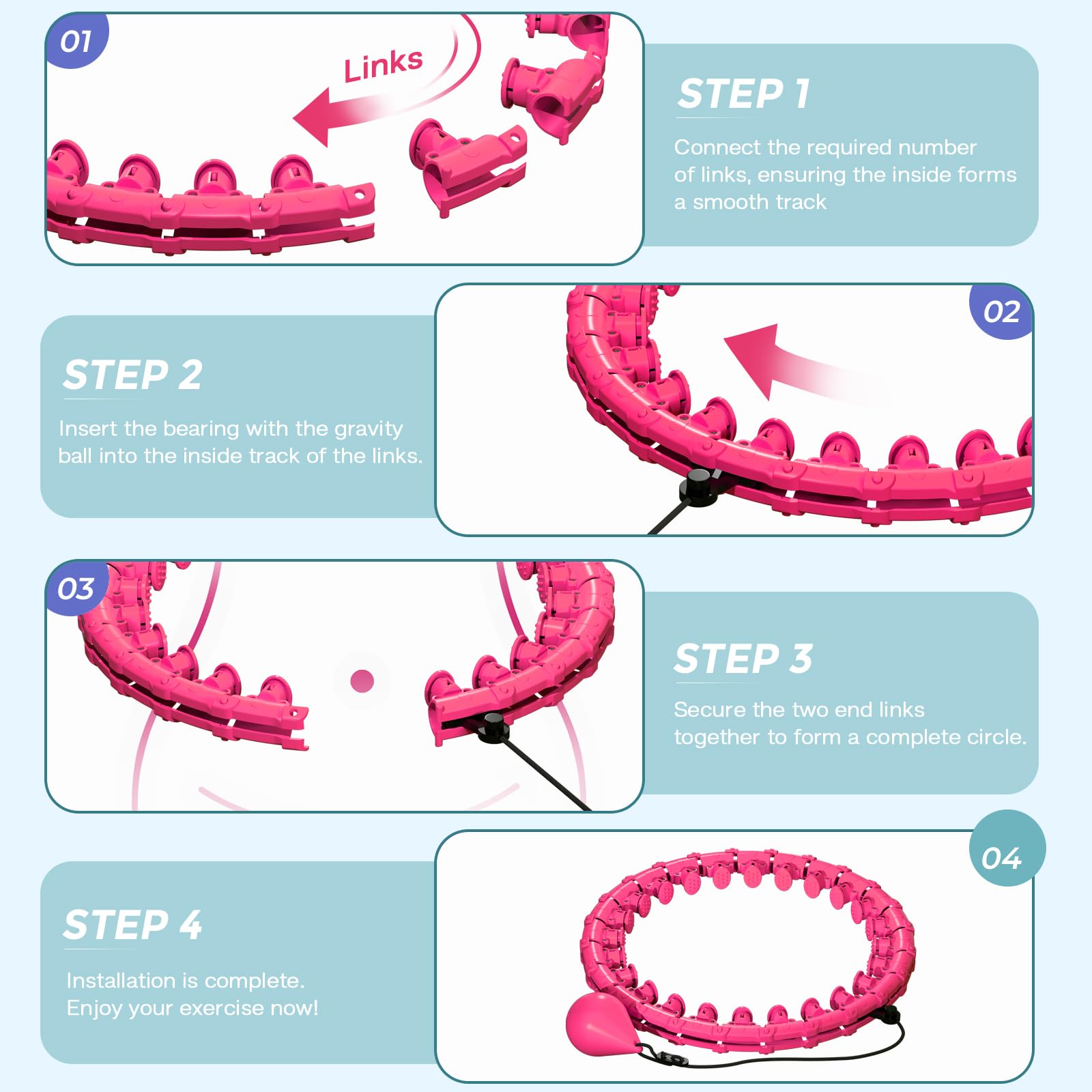 • 【Adjustable Size】: This infinity weighted hula circle fits waist sizes from 17 inches (43 cm) to 50 inches (125 cm) with 27 detachable links.The easily adjustable design allows you to customize the fitness hoop for a comfortable fit, making it perfect for adults and beginners focused on weight management and full-body workouts
