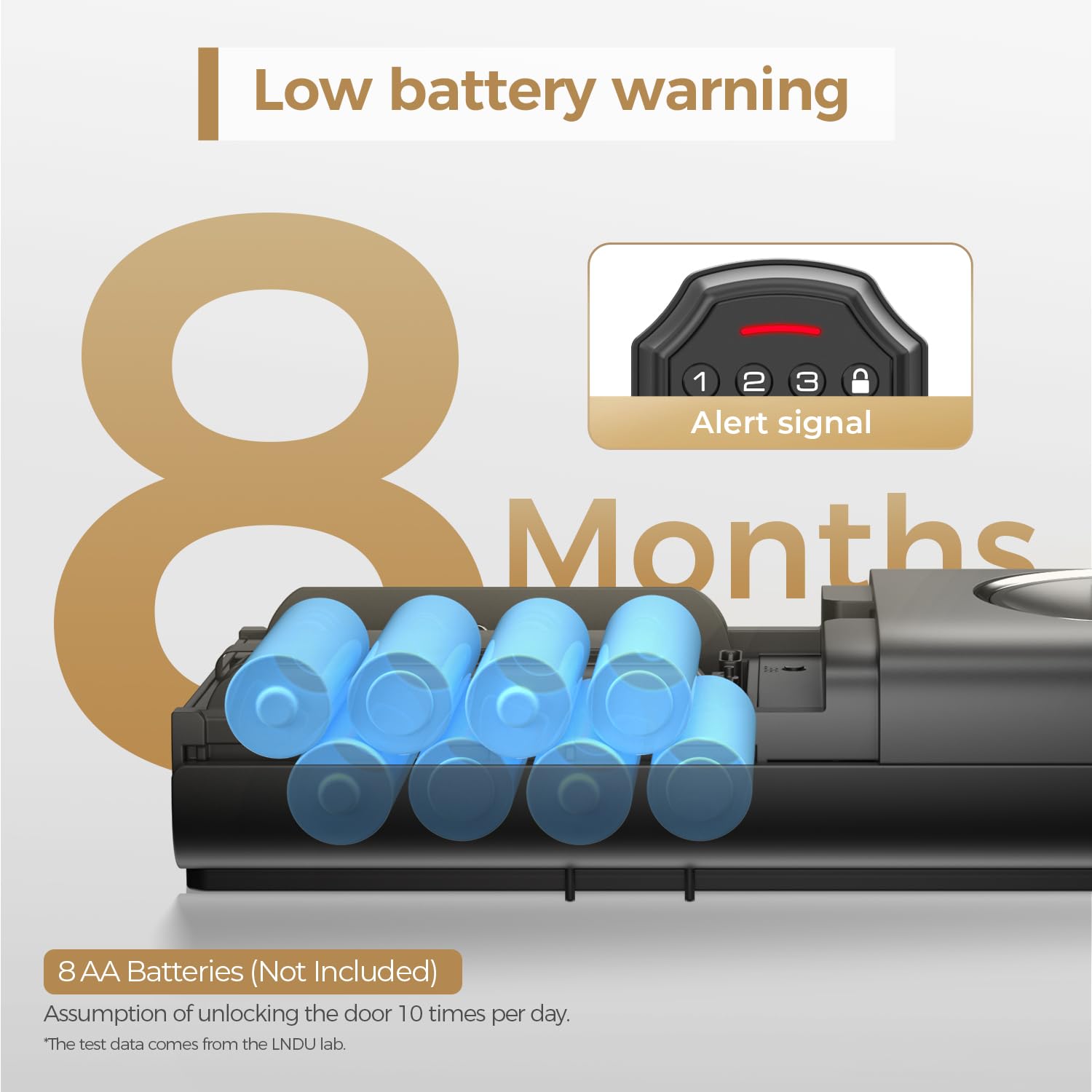 • 【Extended Power for Uninterrupted Operation】Equipped with 8 AA batteries delivering 9+ months of keyless entry functionality, the system proactively issues low-battery alerts through the app and keypad display. Never face emergency front door lock failures again.