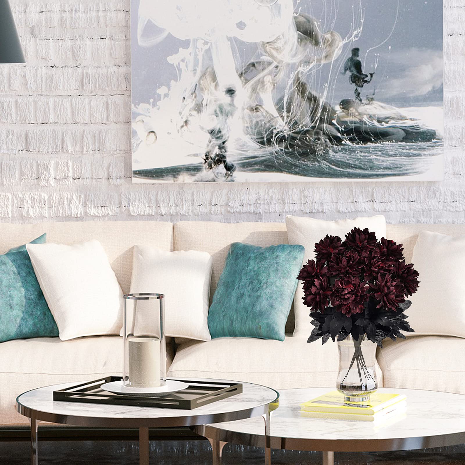 Details: Do you want to decorate your room for Halloween? Do you like a noble and elegant style? This wine red dahlia bouquet will do the trick. Our silk dahlias completely imitate the real effect, if you don’t look carefully, you may think it’s a real one. Artificial Silk Dahlias Bouquet Specification: Color: Wine red Material: Silk Size: 16” × 2.8” (L × W) Occasion: These fake dahlias branches can be used outdoors and indoors, they are also suitable for bedrooms, table centerpieces, window sill, restaurants, balcony, bookshelves, wedding bridal bouquets and so on. Artificial Silk Dahlias Bouquet Features: Bouquets of faux silk dahlias are great gifts for Halloween, Valentine's Day, parties, holidays or anniversaries. Thanks to its natural and bright color, generous and elegant appearance, unique design and durable material, this silk dahlia will never be out of style. What you will get: 10 Pcs 16” artificial dahlias bouquet. Warm Notice: When you receive this fake autumn wreath, there might be a slight odor and you can put it in a ventilated place for 1-2 days after receiving it. Due to the packaging method of the product, this rose branch will be bent to a certain extent, but it can be easily restored without affecting the appearance and use. You can spray some water on the petals to give them a vibrant look. If you add some perfume, they will be more realistic
