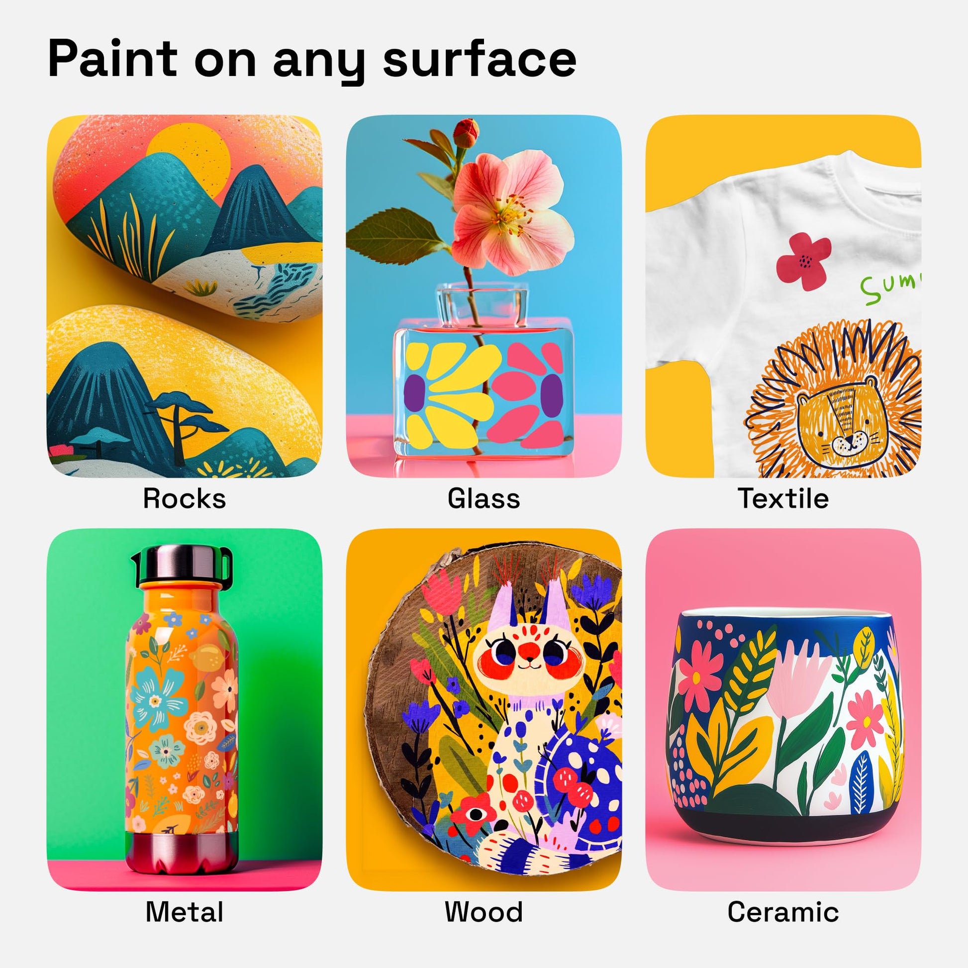 • MULTI-SURFACE: Artistro craft markers are perfect for almost any surface. Paint on wine glass, ceramic, rocks, wood, or more with these dual brush pens! Or use them as fabric paint pens.