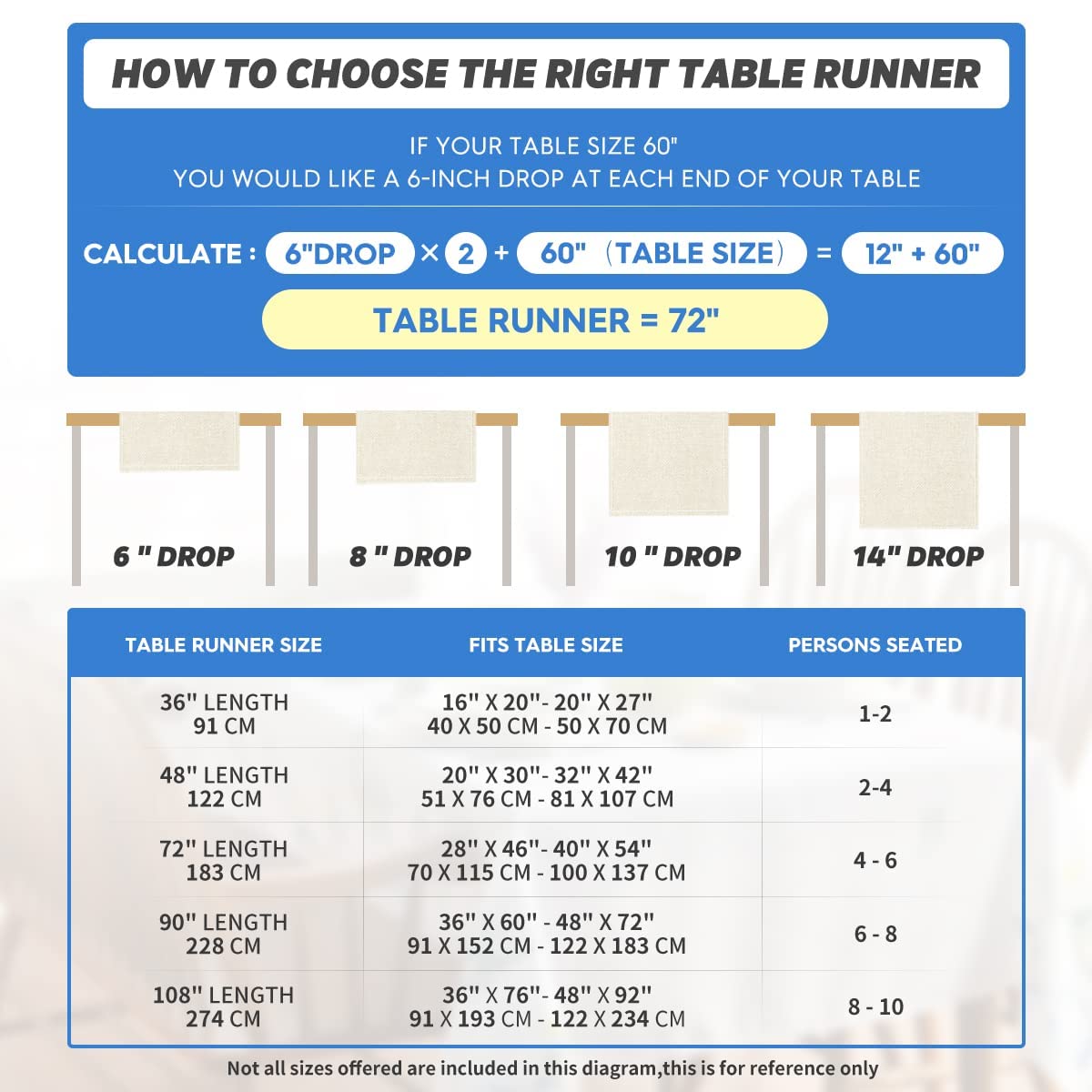 • Fits Table Size : This table runner is 13 x 72 inch, appropriate for a table that can seat 4-6 people, better match your table and give you a delightful dining experience