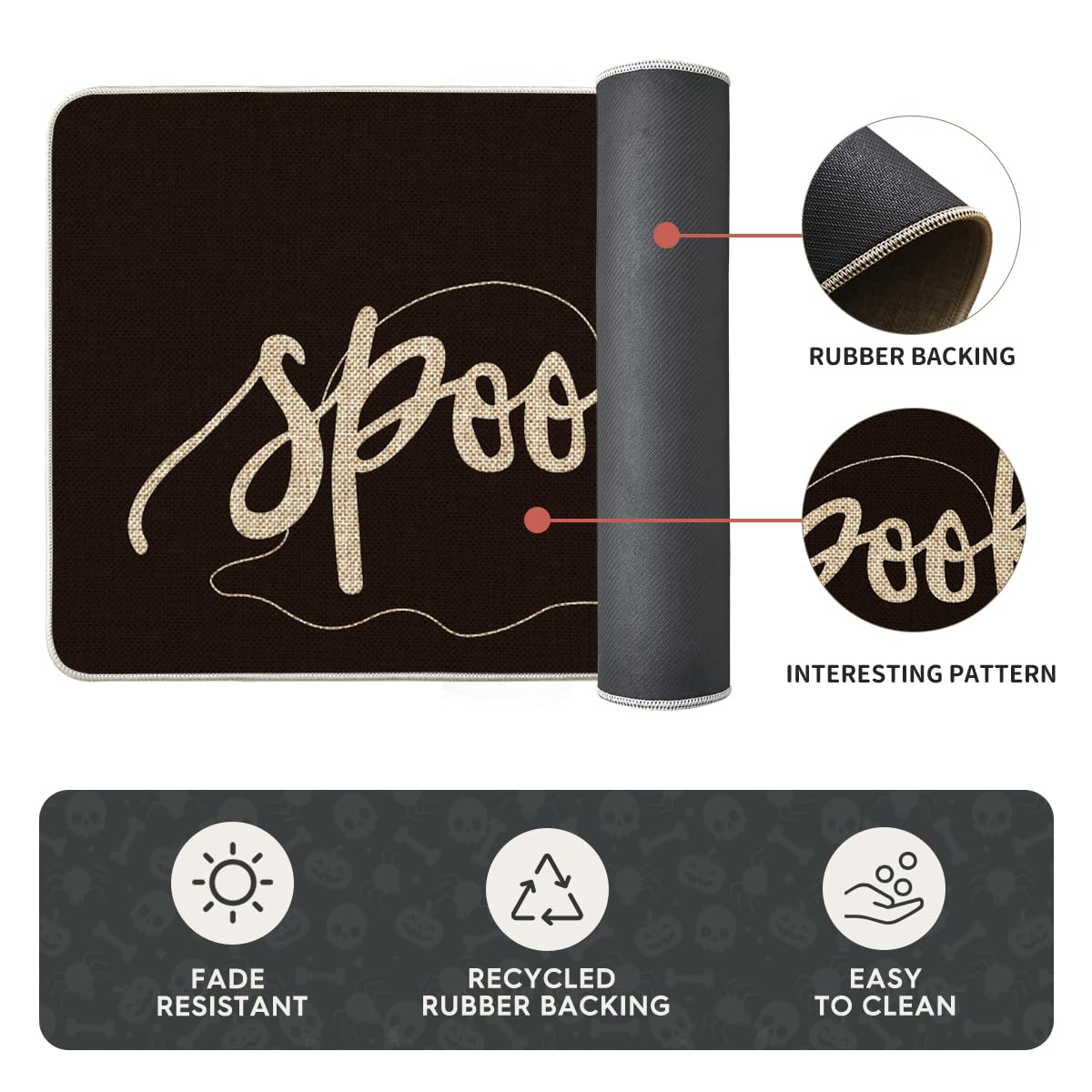 Artoid Mode Spooky Spider Web Ghosts Boo Halloween Kitchen Mats Set of 2, Home Decor Low-Profile Kitchen Rugs for Floor - 17x29 and 17x47 Inch