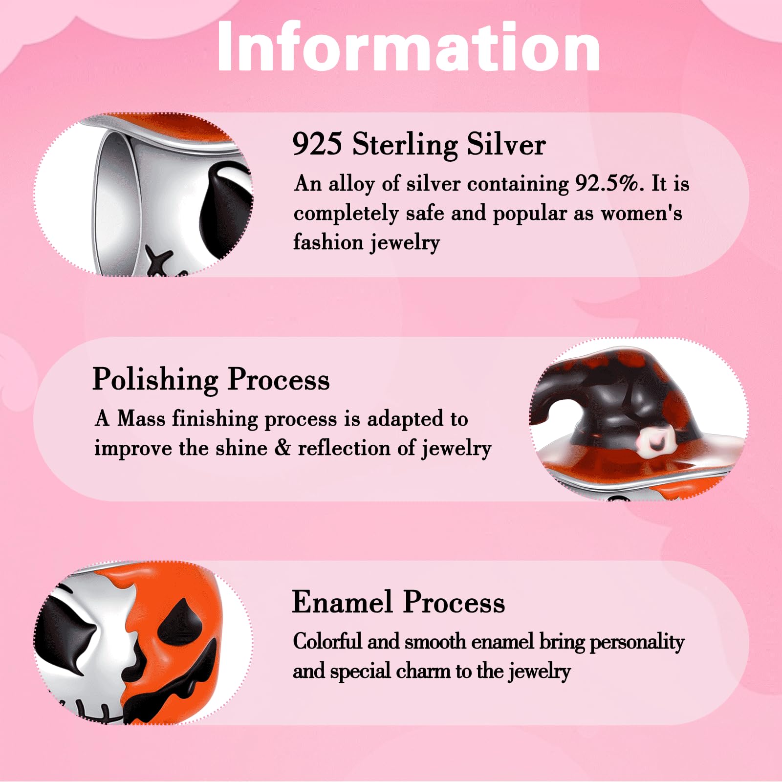 ARVALILS Pumpkin Hat Halloween Charm 925 Sterling Silver Charm Fits Women's Charm Bracelet & Necklace Halloween Jewelry Gifts for Women