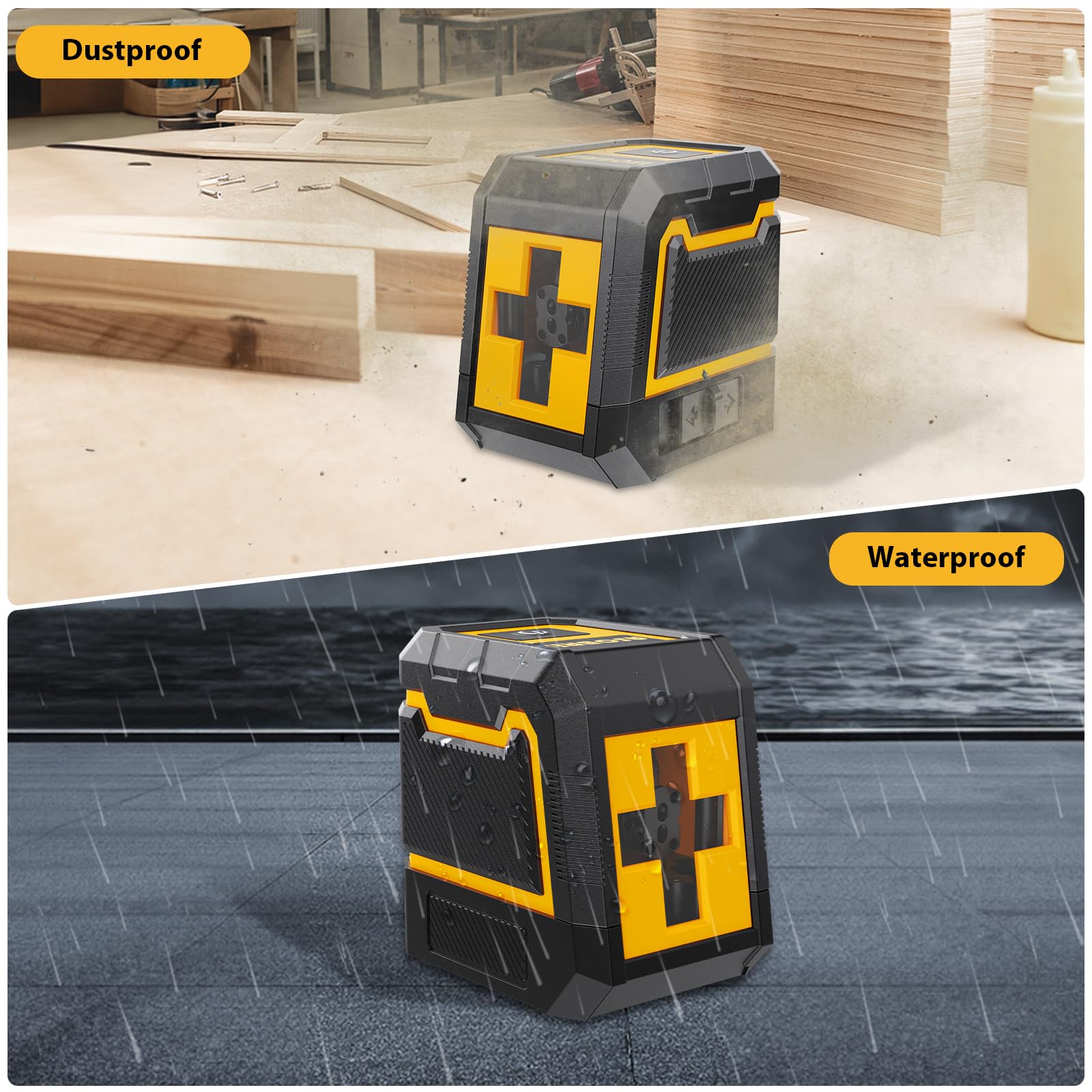 • 【3 Adjustable Brightness Laser Tool】After turning on the laser level, you can adjust the green light brightness to suit different environments for better performance. This laser measuring tool is perfect for installing shelves, doors, windows, furniture woodworking, and hanging paintings/wallpapers. This laser tool features a lightweight, palm-sized design, making it easy to carry, and is IP54 water/dust resistant. With simple operation, this leveler tool powers on instantly and is easy to use, so even non-professionals can operate it effortlessly.