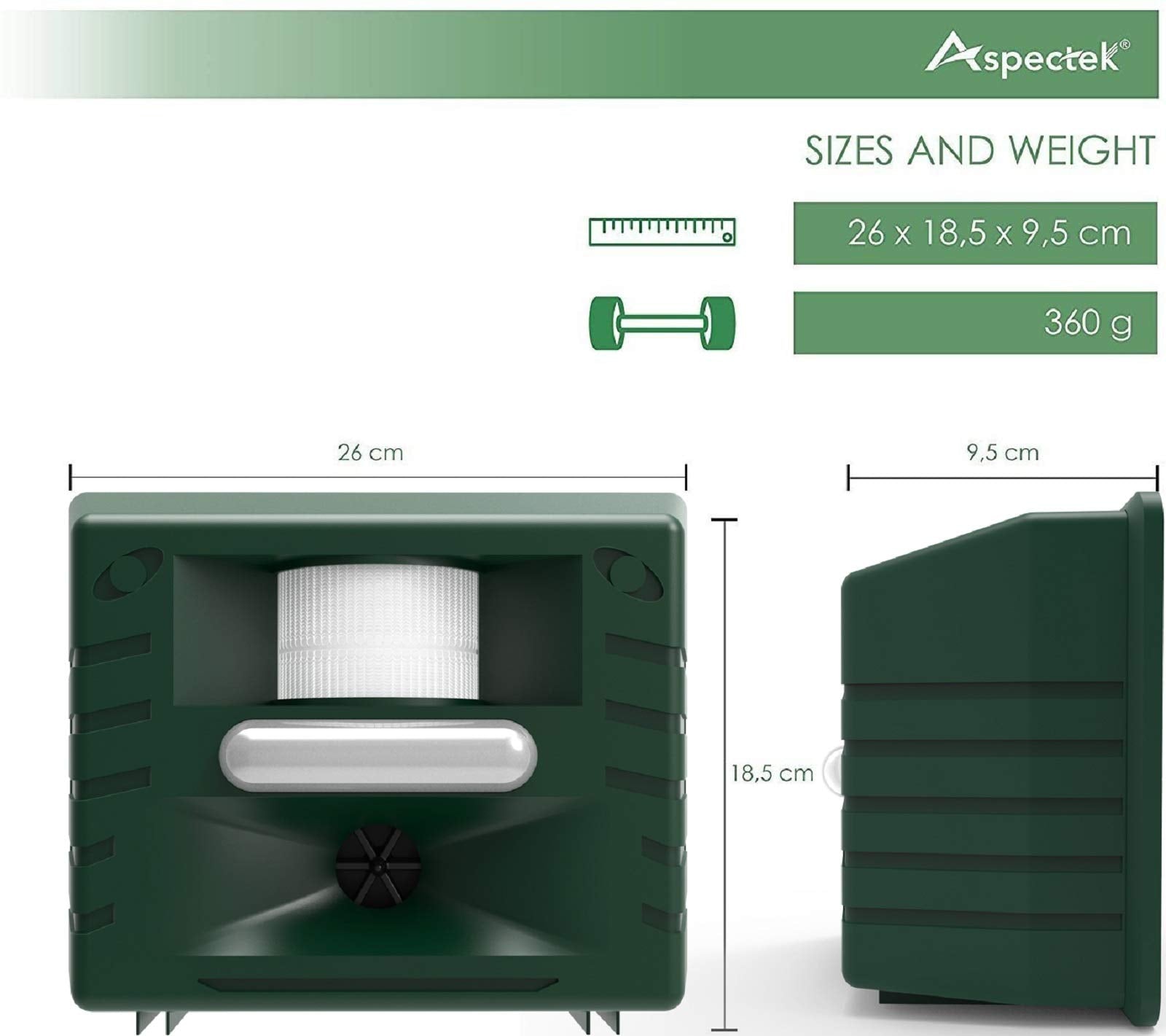 ASPECTEK Yard Sentinel Outdoor Ultrasonic Animal Repeller with Motion Sensor, Adjustable Volume, Waterproof, Extension Cord, Powerful Repel for Squirrel, Raccoon, Skunk, Rabbit, Fox, Deer, Etc