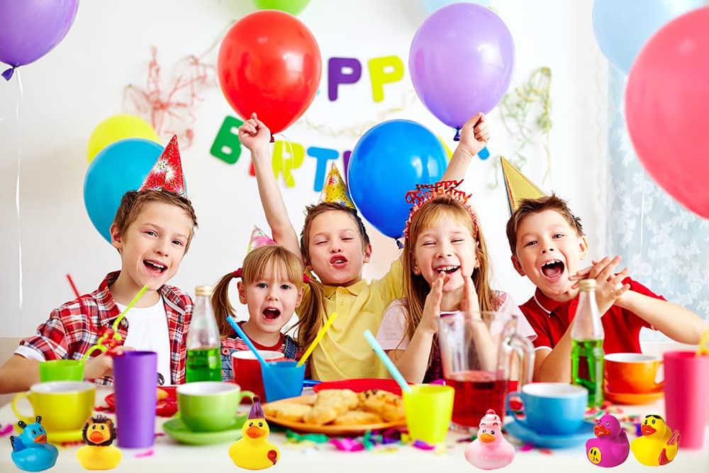 • IDEAL PARTY DECORATION: The cute Assortment Rubber ducks are designed in 10 different Colors which make the Duckies the perfect gift and decoration for any kids’ party. Adds Fun and Atmosphere to your party that will leave good memories to all your guests! They are wonderful gifts for Birthday Parties, Baby Showers, Carnival Prizes, Classroom Rewards, Goodie bag Fillers, and much more!