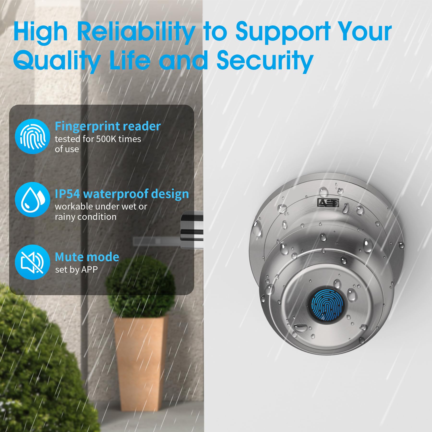 • [Robust Design]: Main parts of the digital lock are set made of diecasting metal such as zinc and Aluminum alloy, it is perfect for indoor doors such as bedroom door lock. IP54 waterproof design to this auto locking digital door knobs is applied for better reliability as outdoor lock.