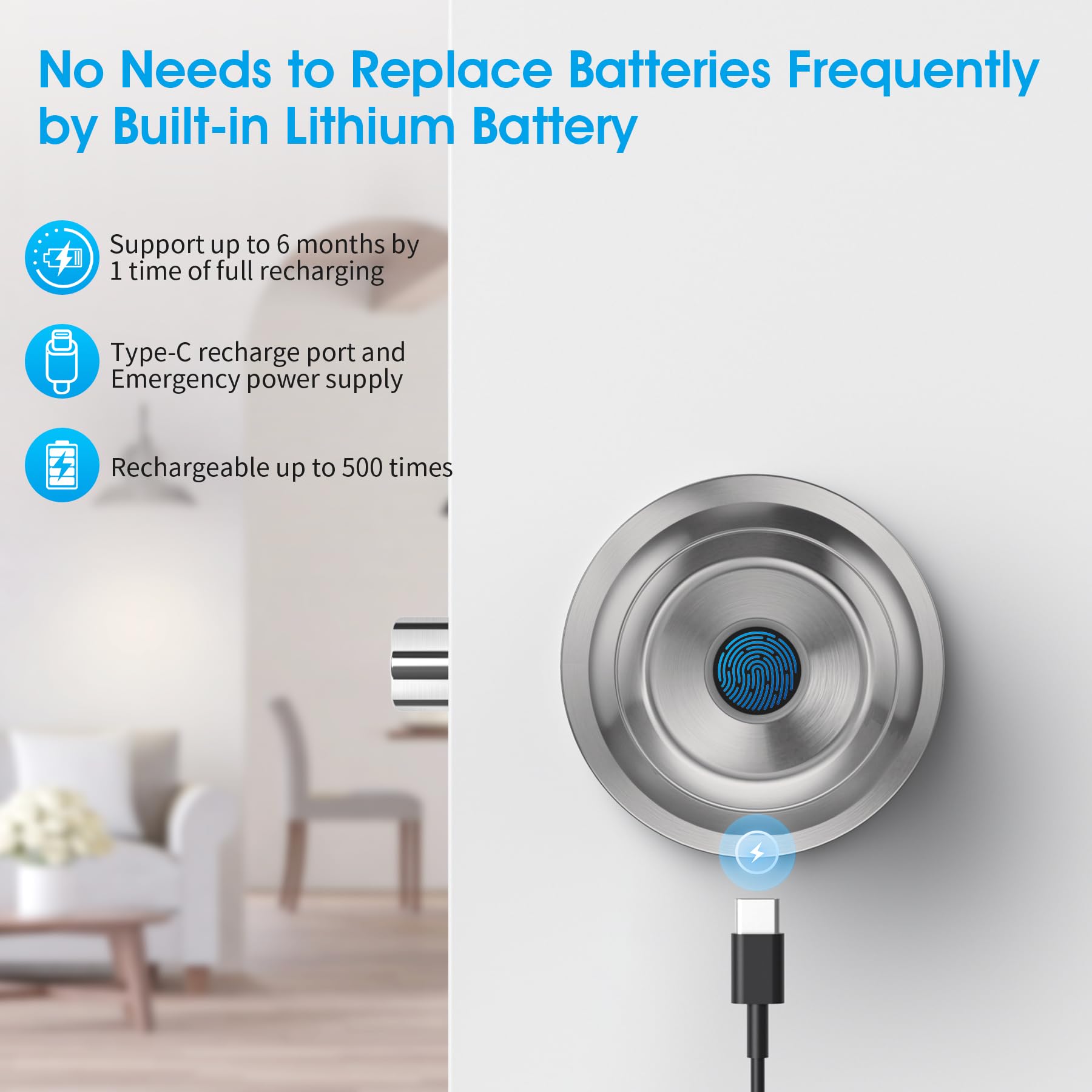 • [Better Security]: This fingerprint knob lock has auto locking for exterior and Thumb Turn for locking locks for doors inside with high strength design for better security. Smart door lock APP to manage the finger print door knob and . Interior snib design is with 3 functional modes including security, privacy and passage.