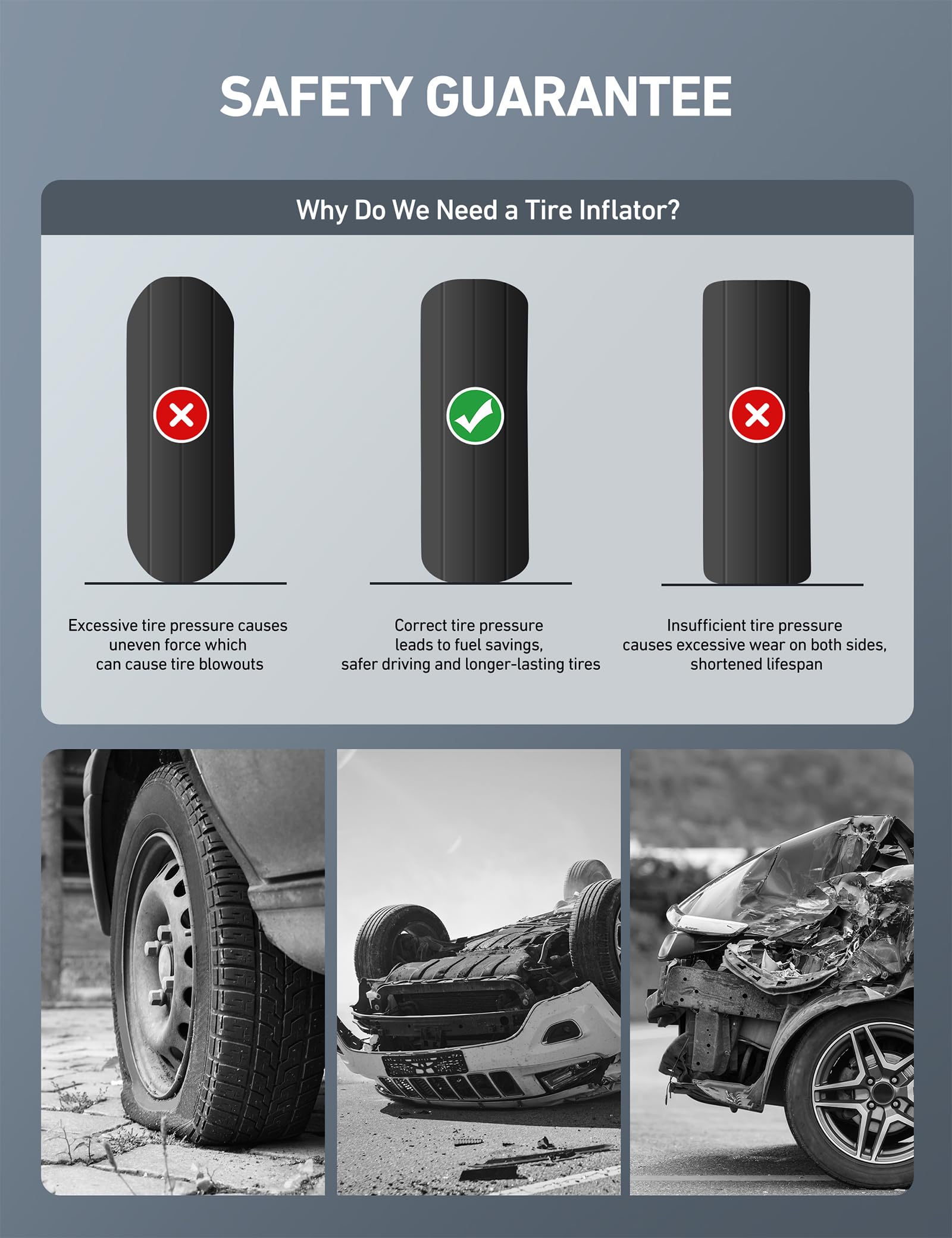 • INCREASED SAFETY: Properly inflated tires provide better performance in all weather conditions, decreasing the likelihood of flats, explosions, and crashes; Increase your MPG and save money on fuel costs and tire wear