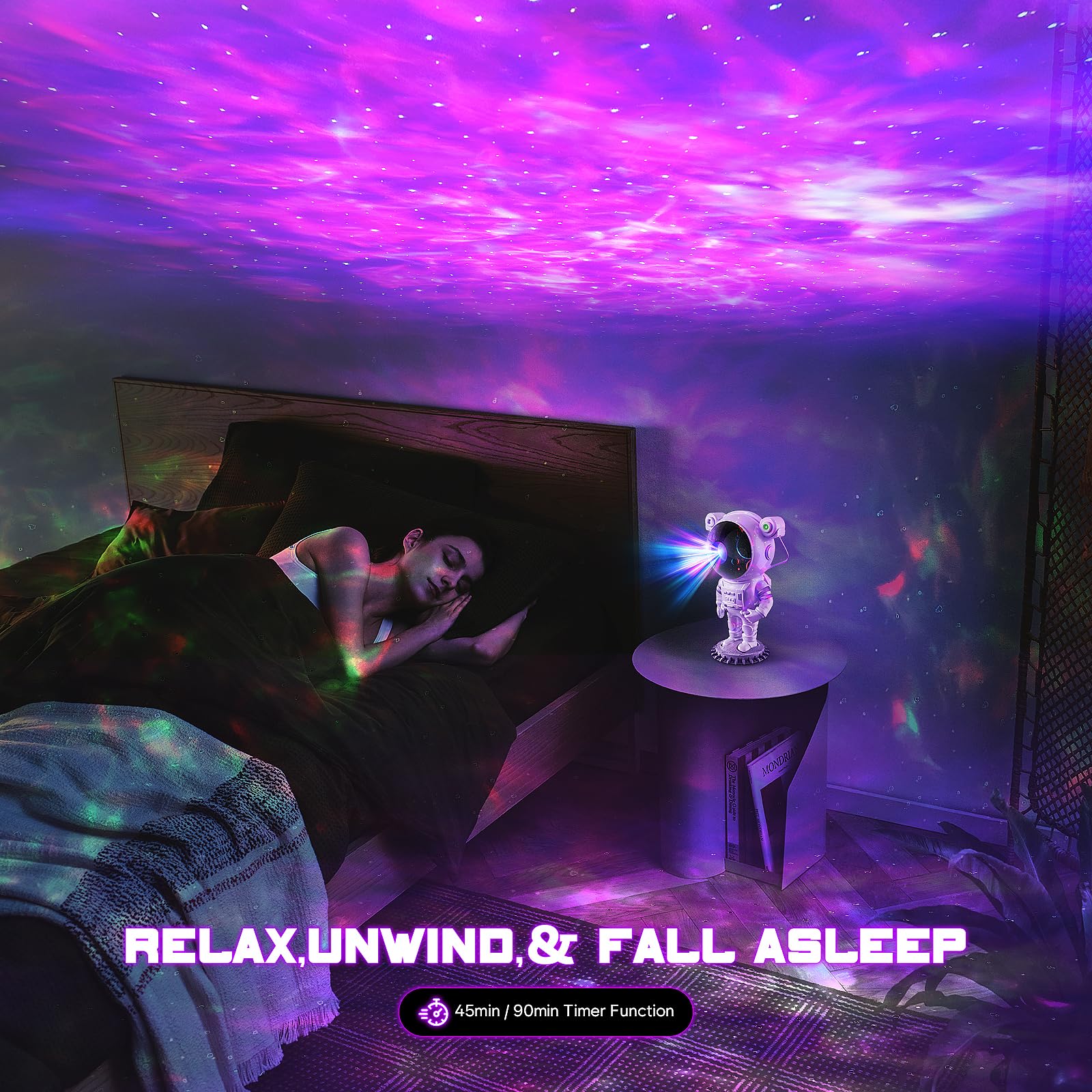 • [LED Starry Sky Projector] This astronaut projector with cute and unique appearance - astronaut. It has many different colour settings and combinations and will create a magical atmosphere by projecting a whole universe directly onto the ceiling transforming your bedroom, office or any other room into a magical outer space, a must have for any space lover.