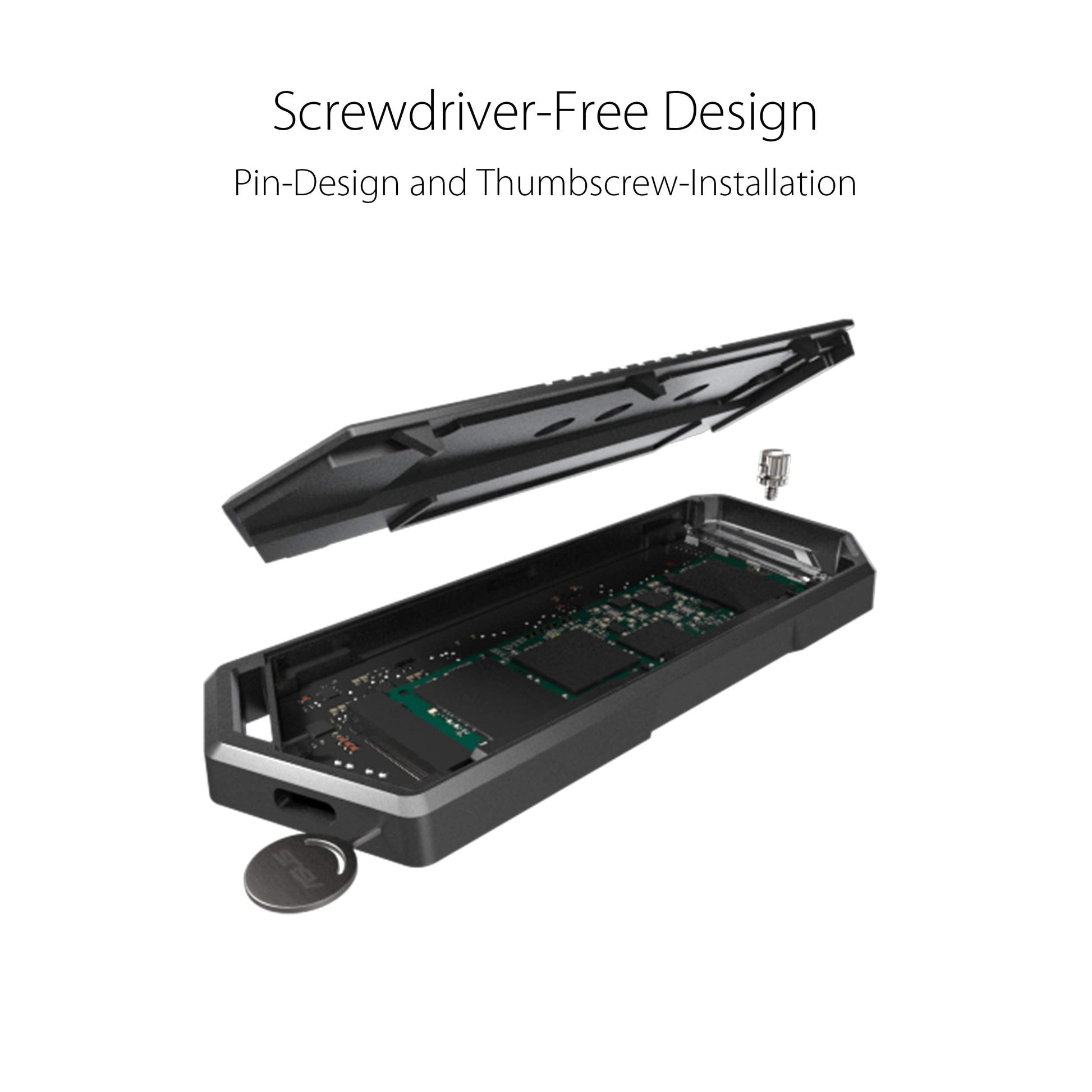 Details: The ASUS ROG Strix Arion M 2 PCIe NVM Express SSD enclosure supports 2230/2242/2260/2280 form factor drives with data transfer speeds up-to 10 Gbps The screwdriver-free design provides easy installation while the included thermal pads and customized ROG aluminum case dissipate heat from your M 2 drive keeping Arion cool under pressure.