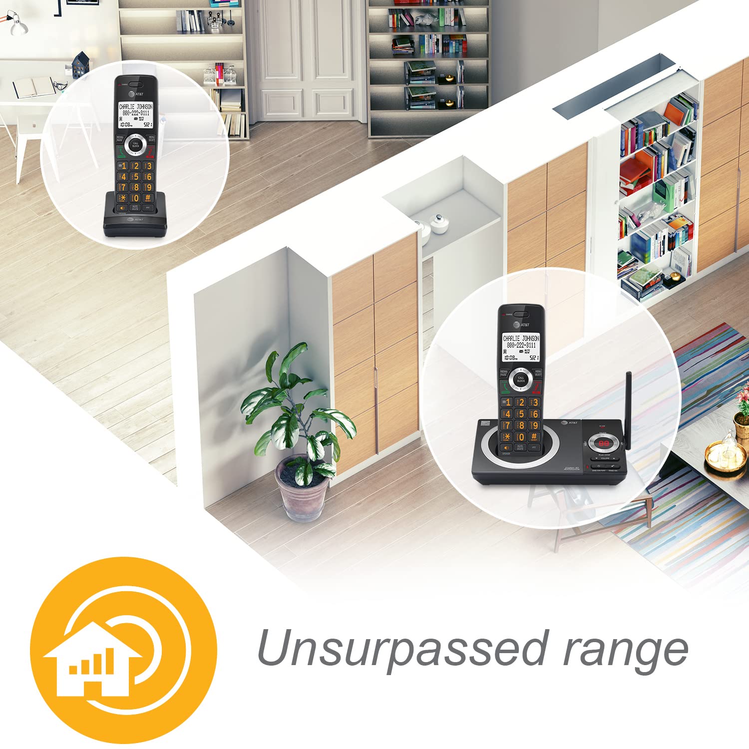 AT&T CL82219 DECT 6.0 2-Handset Cordless Phone for Home with Answering Machine, Call Blocking, Caller ID Announcer, Intercom and Long Range, Black