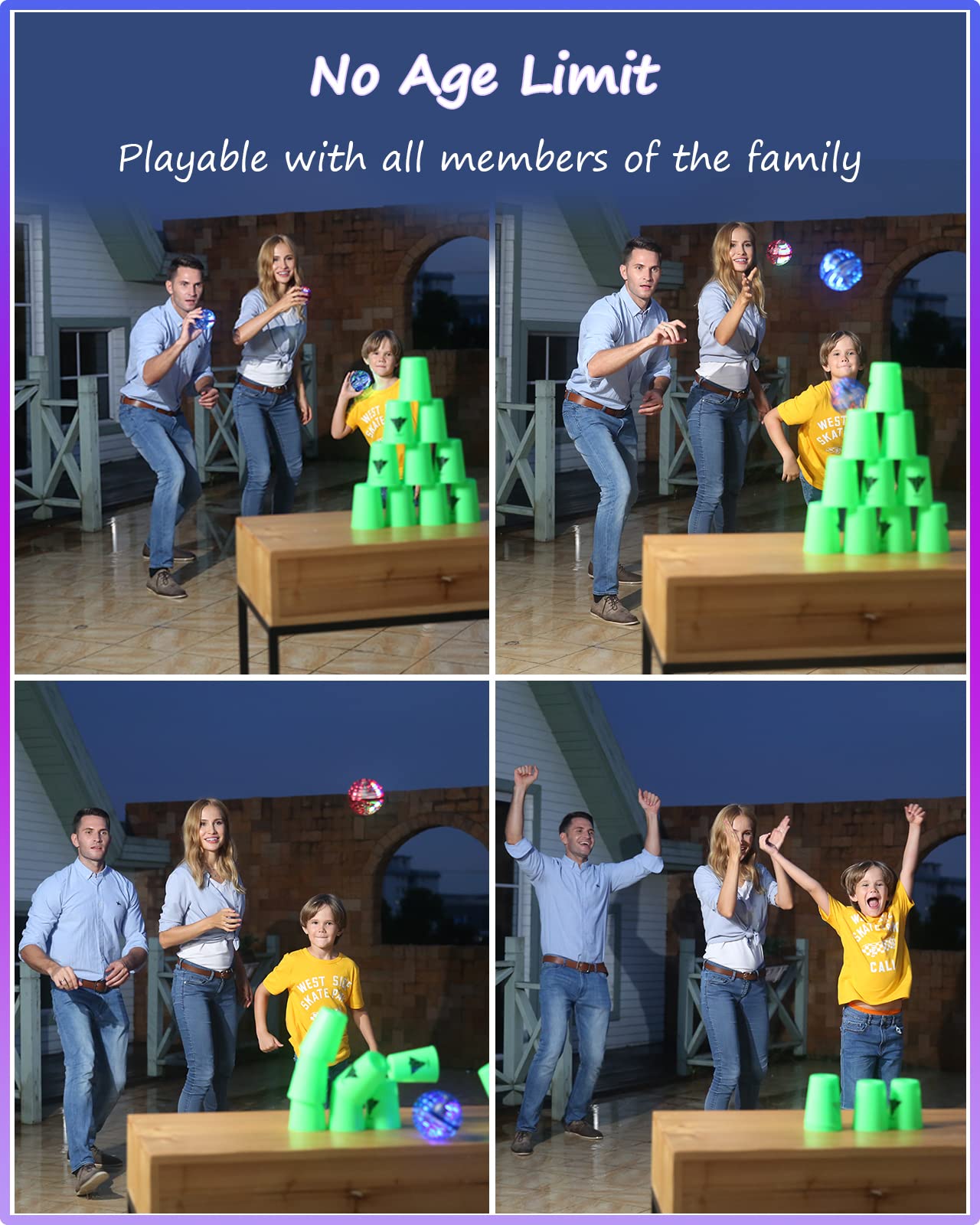 • Indoor & Outdoor Toys: The magic hover ball built-in RGB Light, colors are vibrant look like a neon shooting star when you launch it across the sky. Very fun to play outside especially in the night have a lots of eyes on it. Unique indoor outdoor games, helps to move around and fun, multiplayer will be more interesting.
