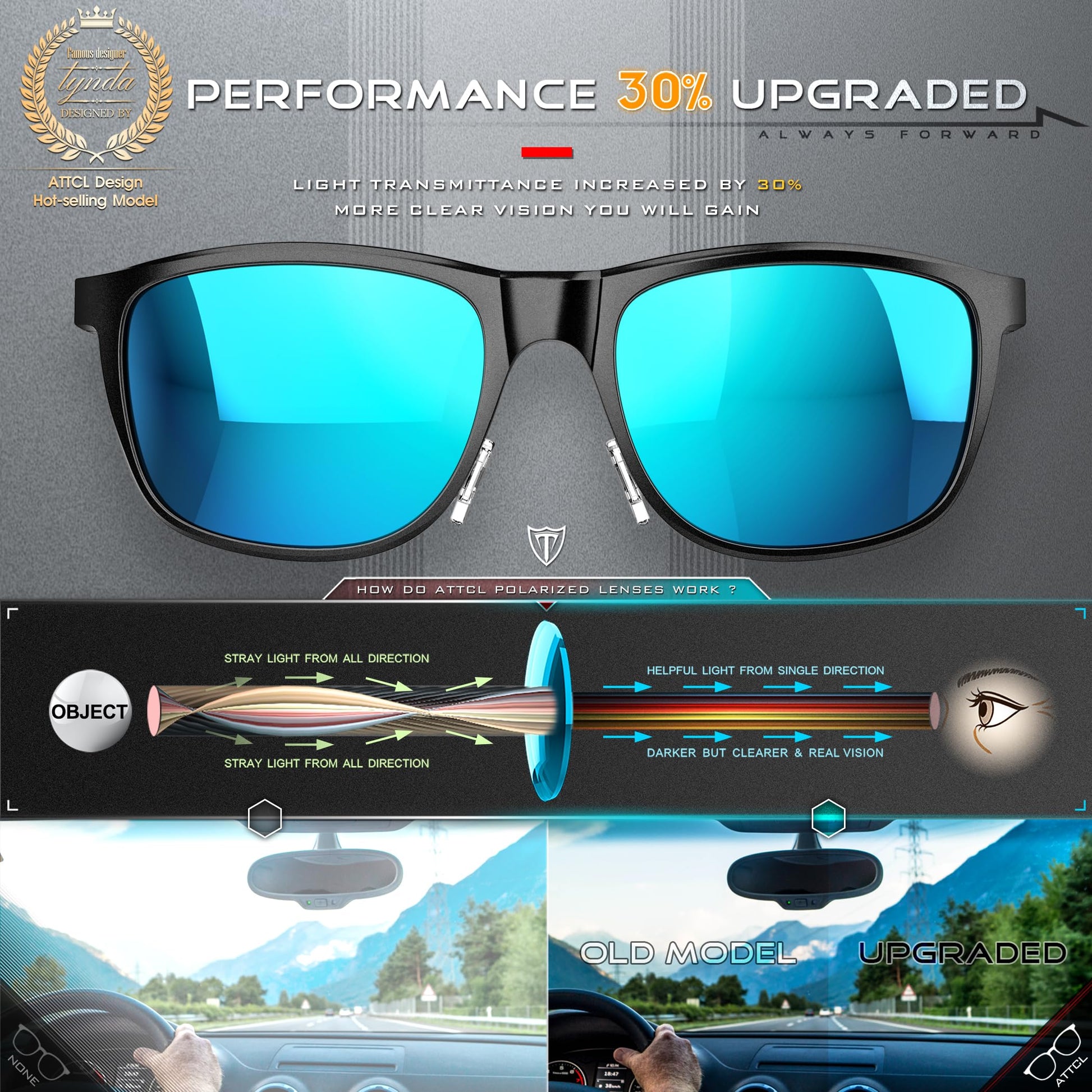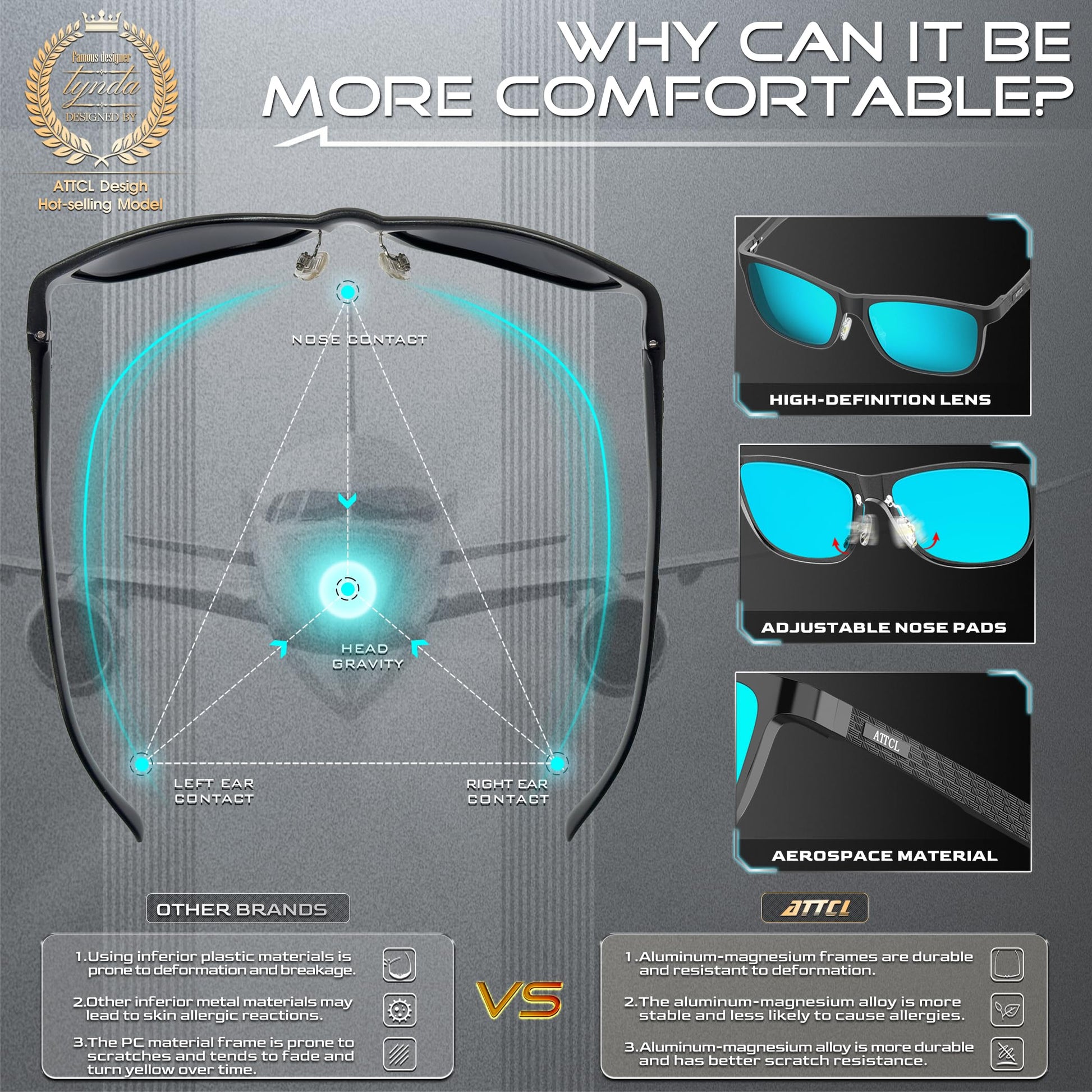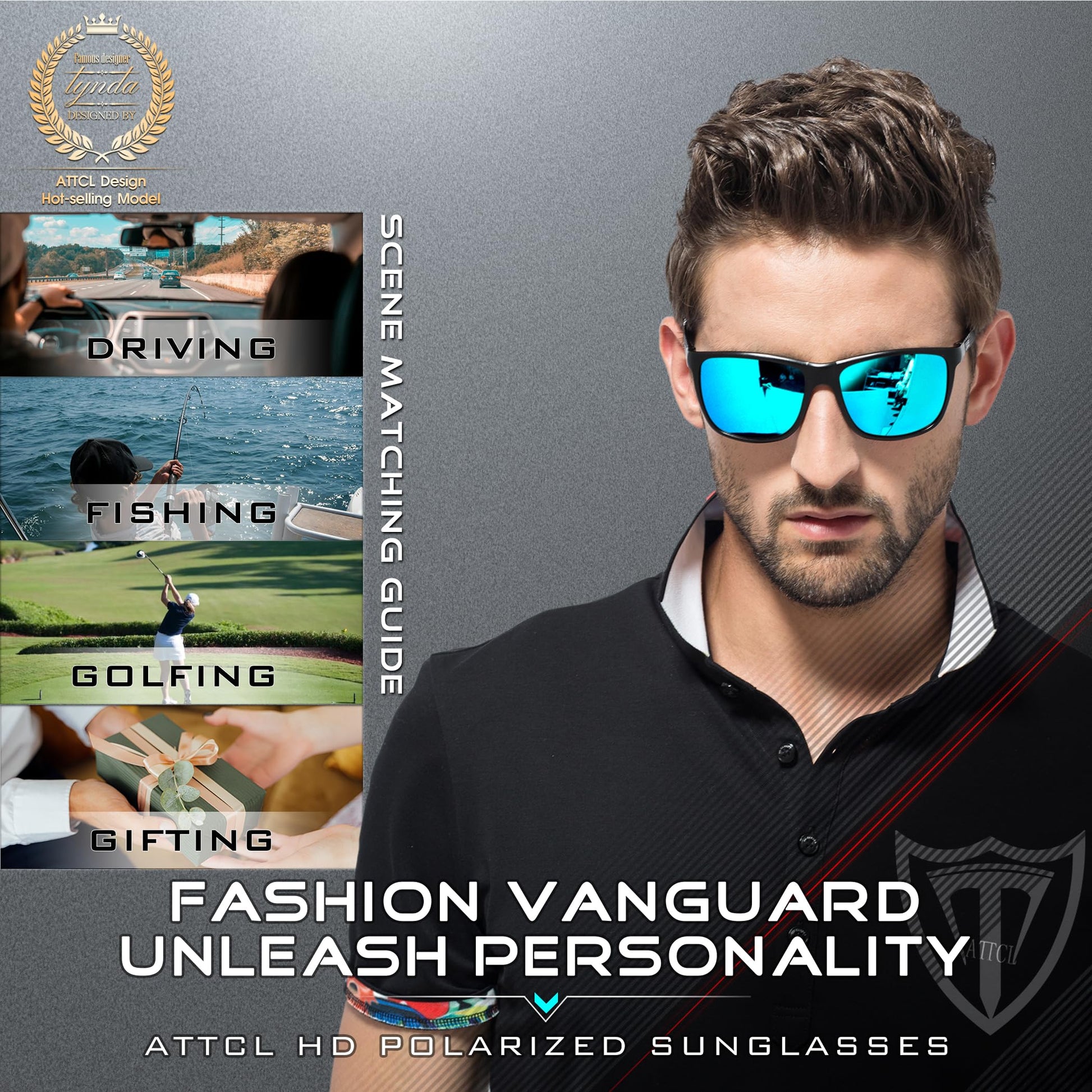 • WHY CHOOSE US? -Aerospace-grade AL-MG Frame: - ATTCL Polarized Sunglasses men are stronger, ultra-light, ultra-hard, flexible, corrosion-resistant. 27% lighter than steel frame, stronger than TR90, premium Than plastic; All make this mens sunglasses polarized Ideal for Beach, Driving, Fishing, Golfing, Travel, and more.