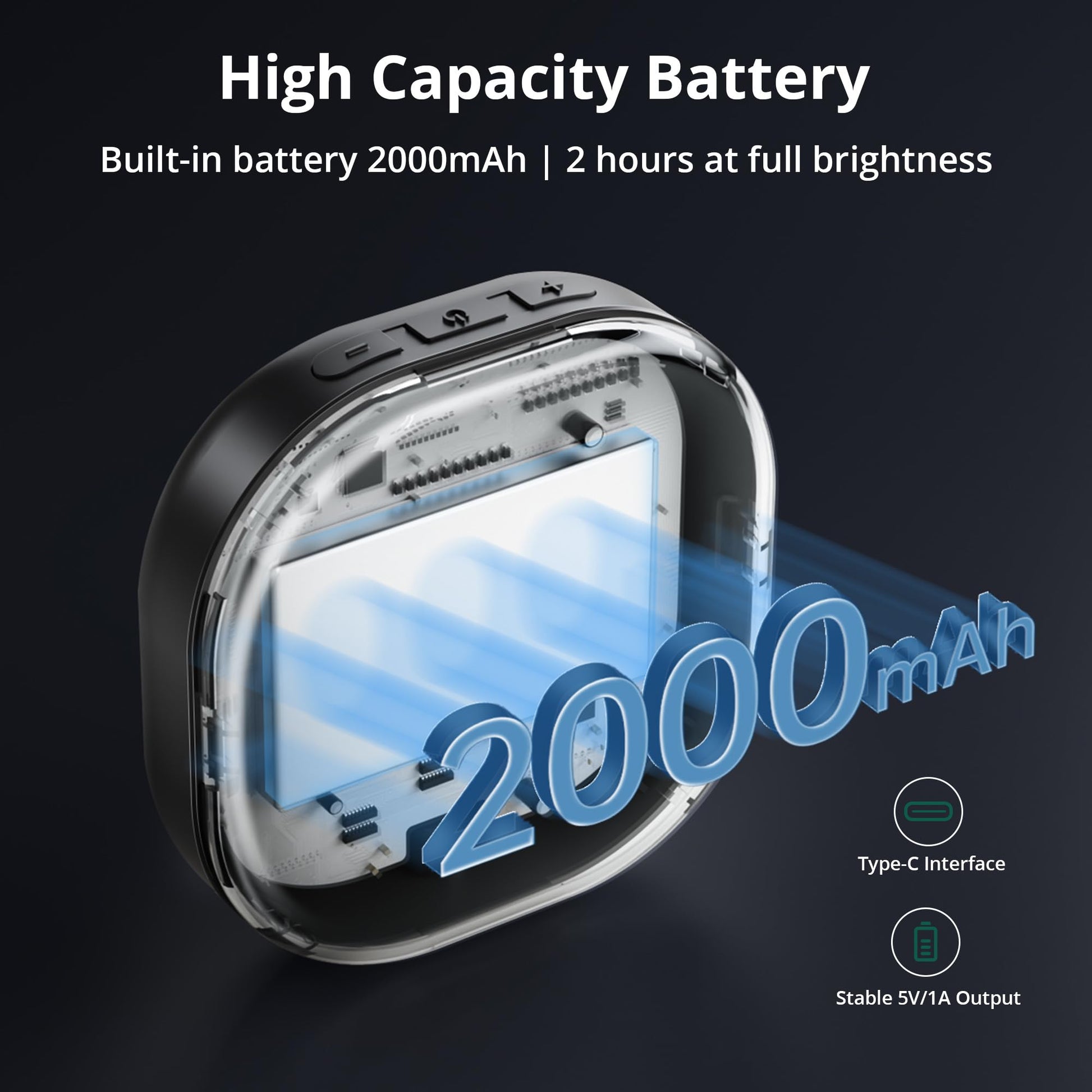 • [2000mAh Rechargeable Battery] The ATUMTEK RGB camera light features a built-in 2000mAh lithium battery, providing a convenient power source. With a charging time of approximately 2 hours, it offers a maximum brightness output of up to 2 hours and a minimum brightness output of up to 15 hours. The light can be easily recharged via the convenient Type-C charging port.