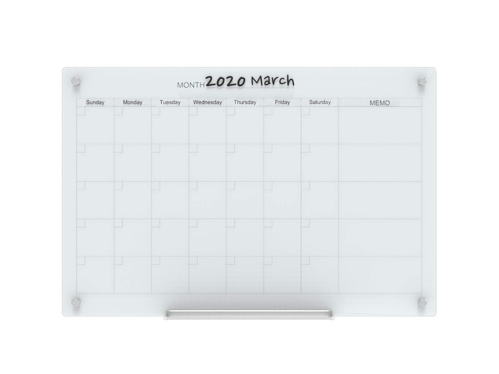 Audio-Visual Direct Magnetic Glass Dry Erase Board Set (3' x 2', Calendar White) for Wall - Monthly Planner