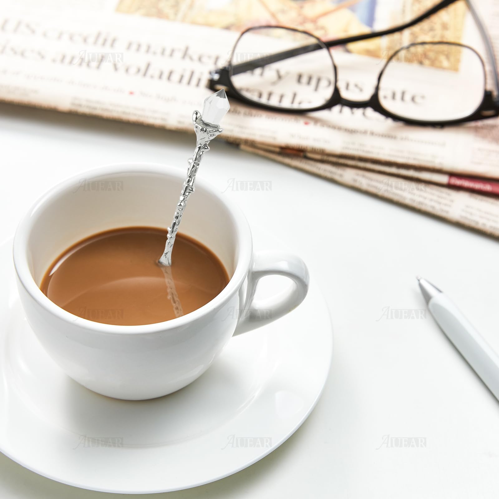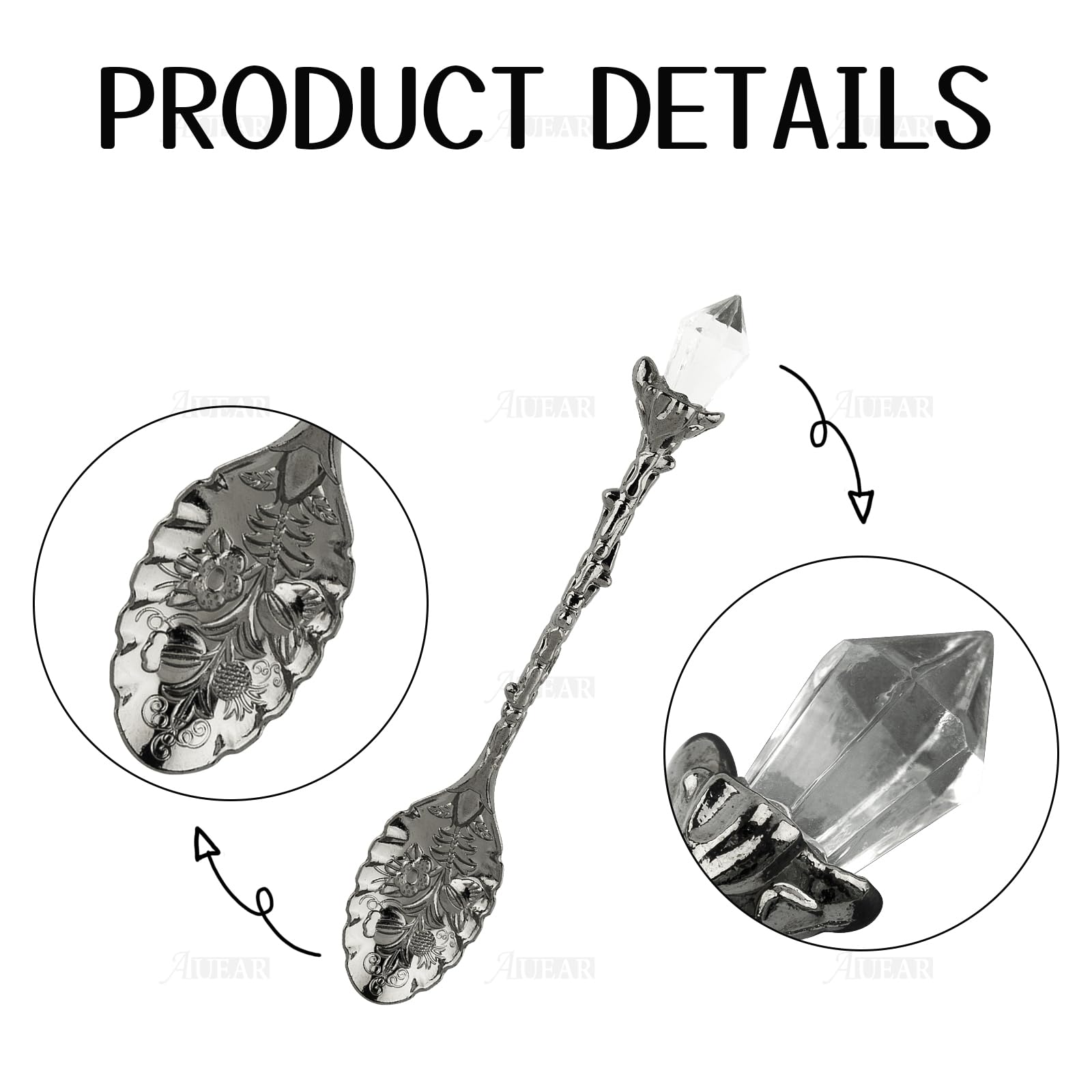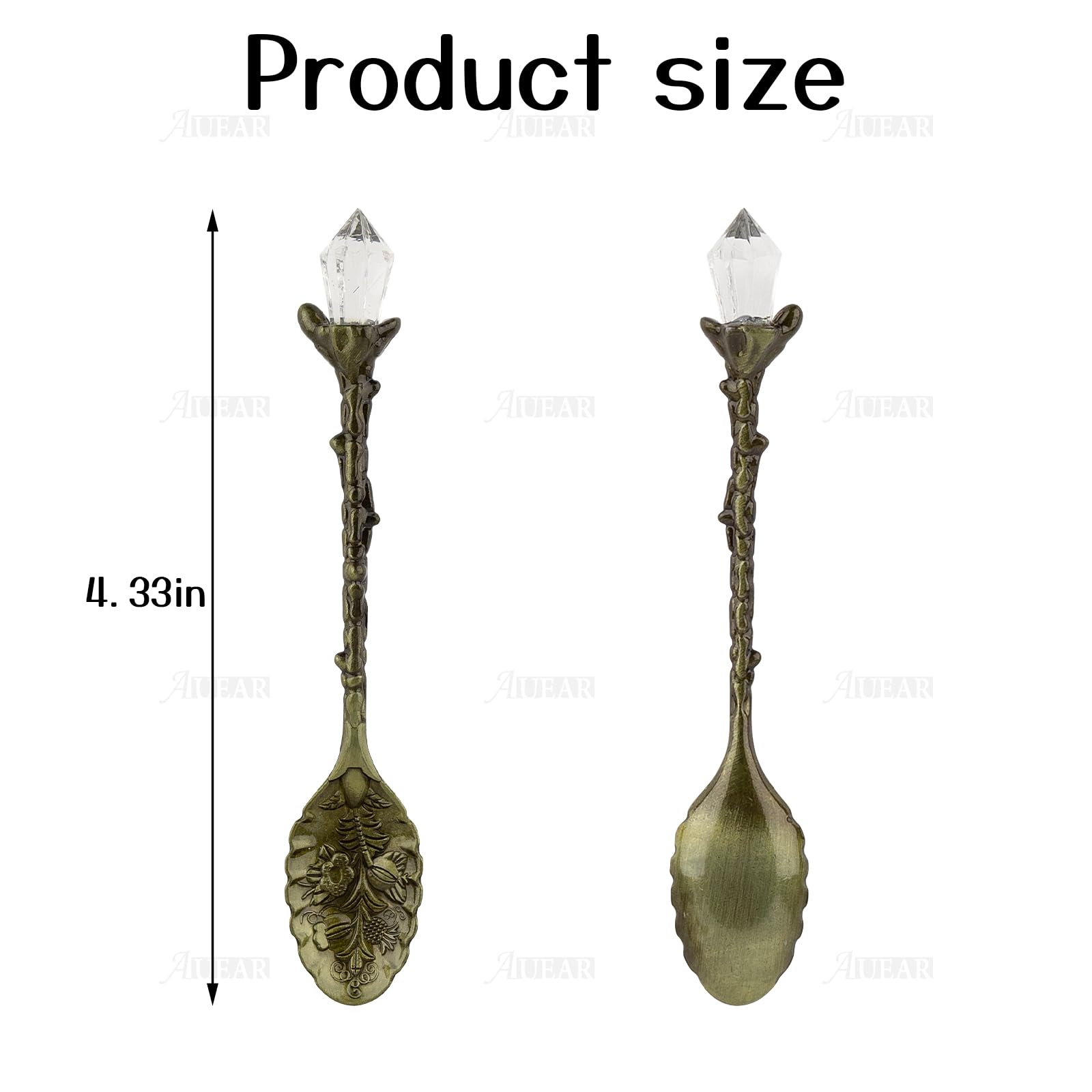 AUEAR, Retro Crystal Antique Alloy Spoon Coffee Tea Dessert Mini Ice Cream Decorative Spoons Set for Home Office (5 Pack)