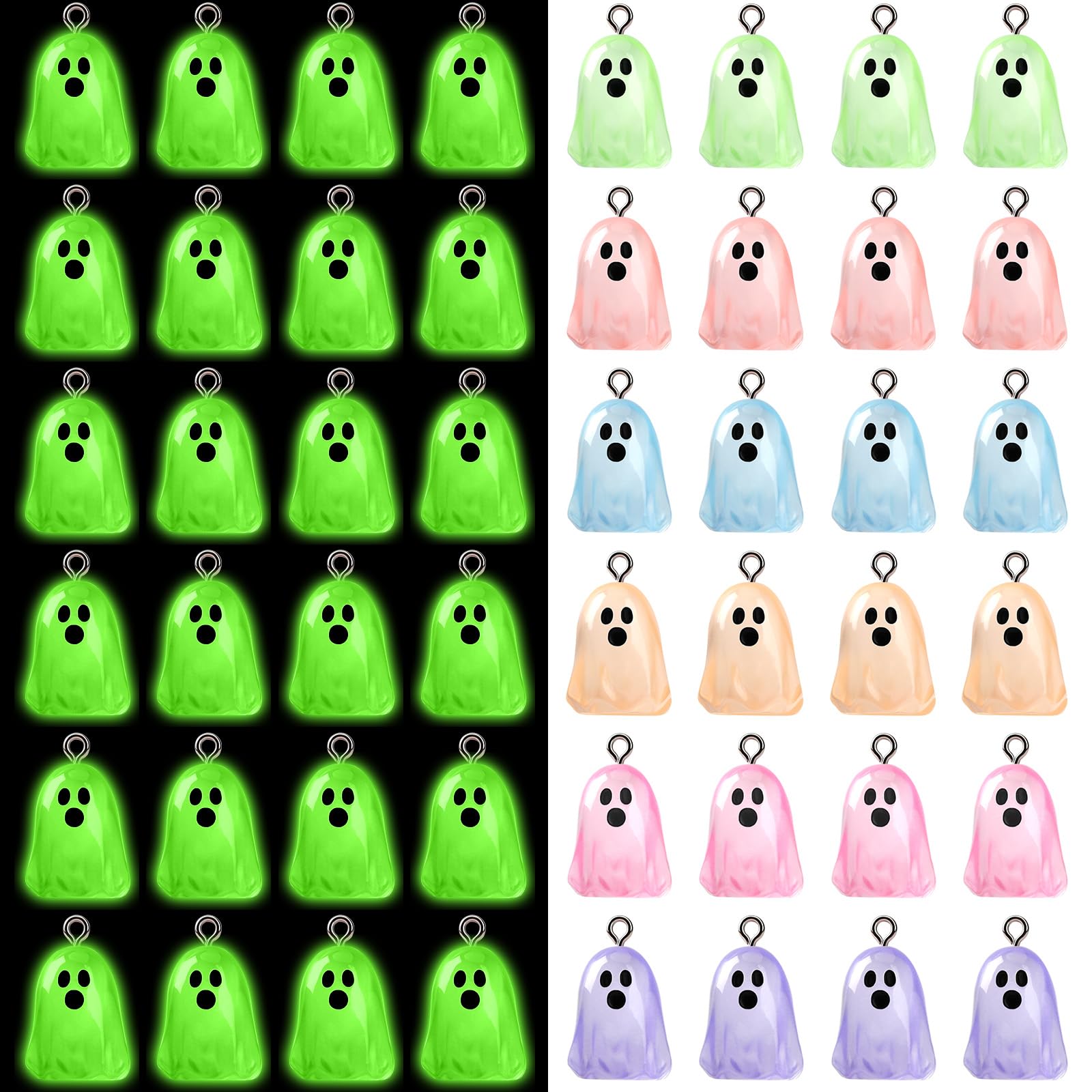 Augshy 64 Pcs Halloween Ghost Charms, Resin Ghost Charms Luminous Ghost Beads Halloween Pendant Bulk Glow in The Dark Ornament for DIY Bracelet Necklace Earrings Jewelry Making Accessories Decorations