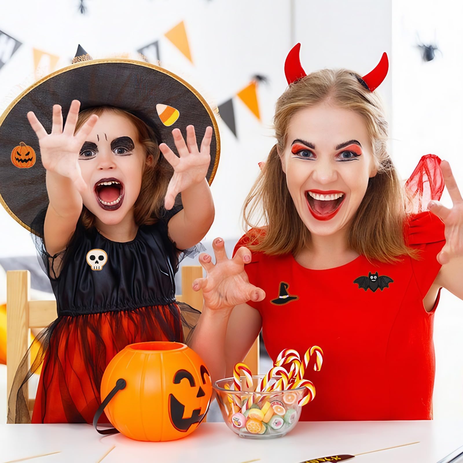 • Easy to Stick: Our Halloween decal patches are coated with special glue on the back, which will melt by heating. You can sew or iron it on your clothes. Keep the cloth dry and control the preheat temperature when ironing the patches. If you want to keep them from falling off, you'd sew them