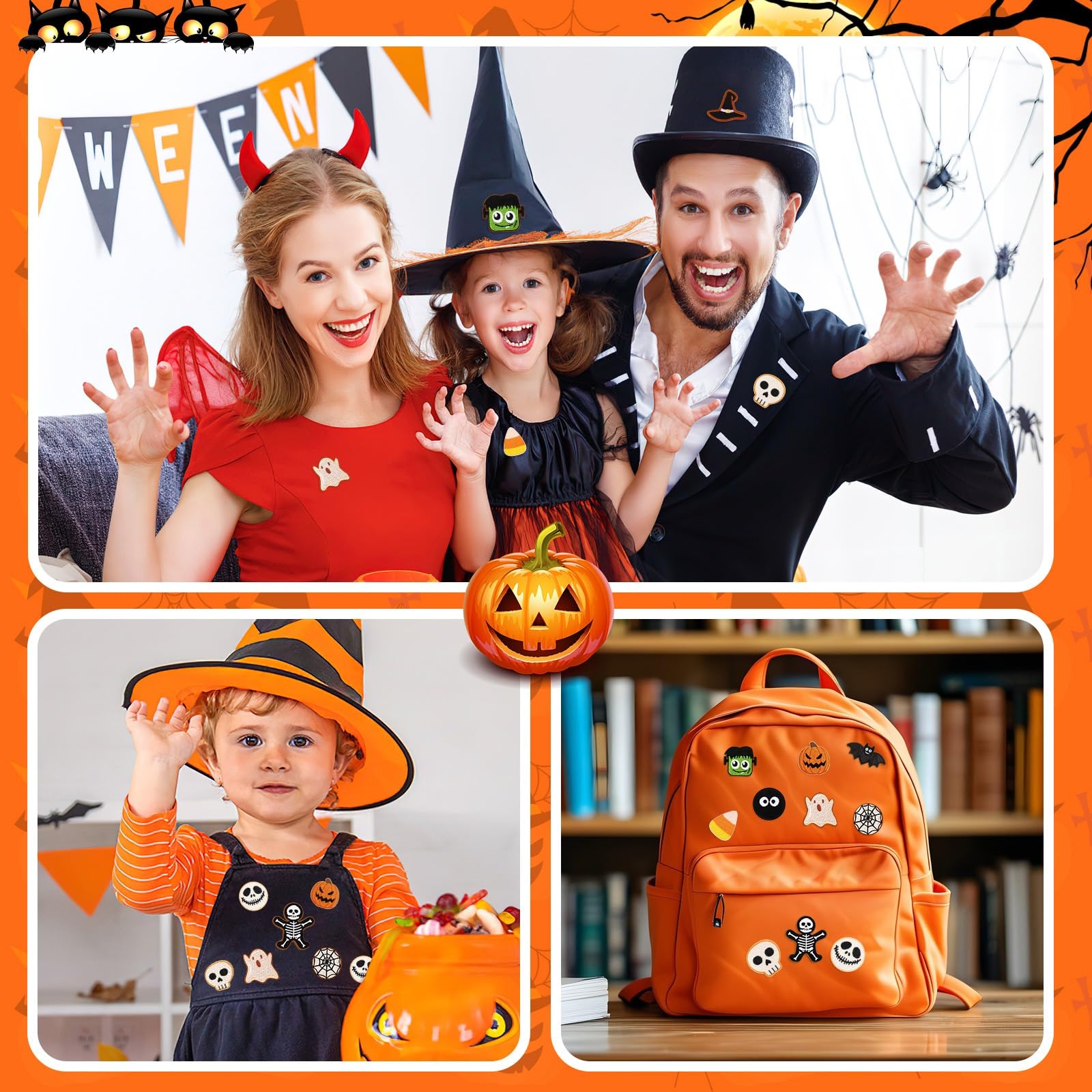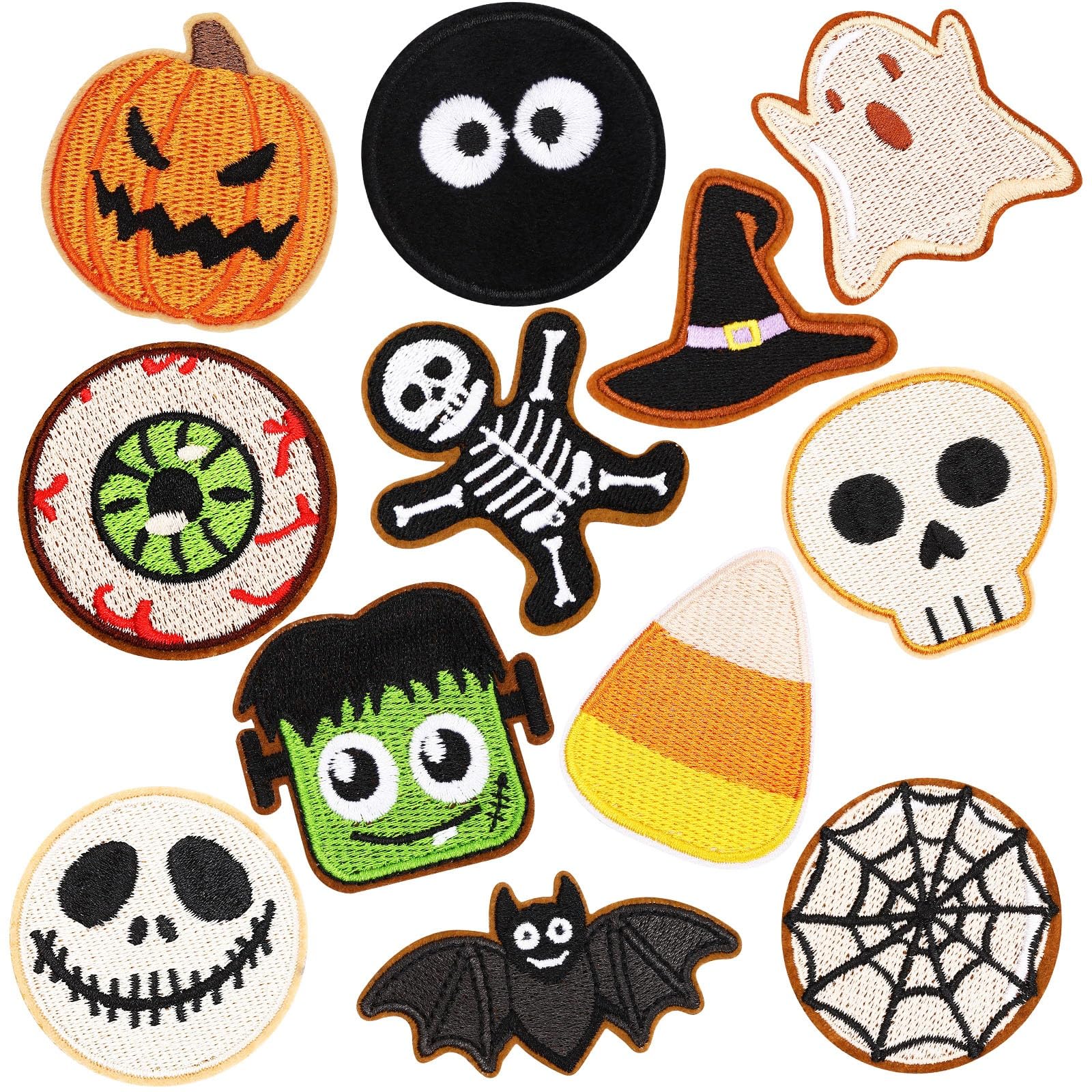• Halloween Cookie Elements: Halloween themed sewn appliques are designed into cookie themes, including pumpkins, skeletons, ghosts, skulls, spiders, witch hats, bats, monsters, candies and other shapes, which can be well matched with other Halloween themed decorations to add a festive atmosphere to your holiday decorations