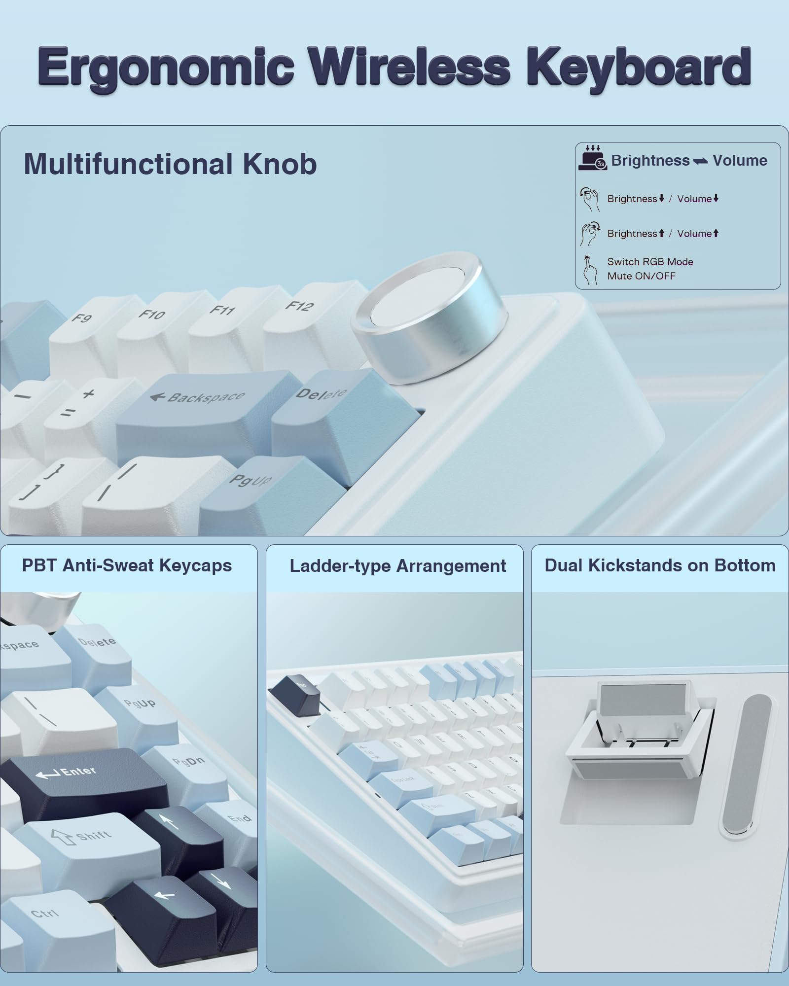 AULA F75 75% Wireless Mechanical Keyboard, Hot Swappable Creamy Keyboard, Pre-lubed Reaper Switches, 2.4GHz/Type-C/BT5.0, RGB Backlit Gaming Keyboards(White & Blue)