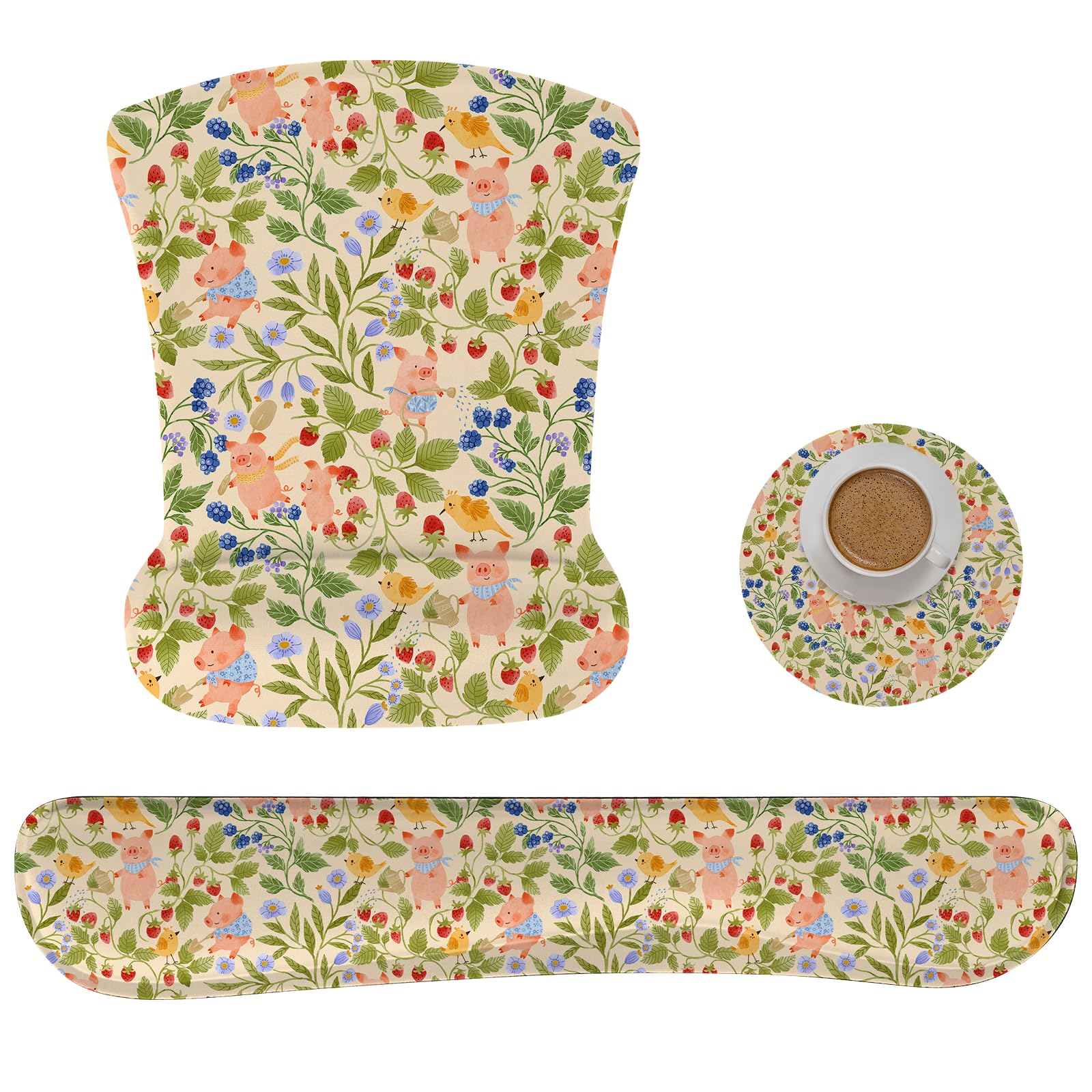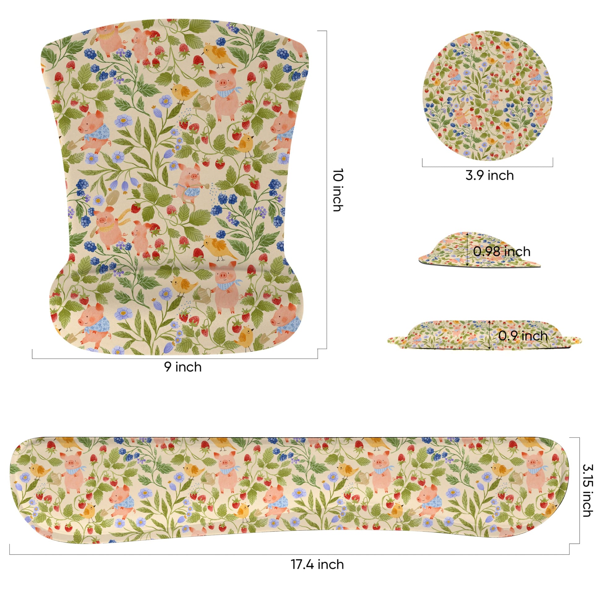 AUPET Mouse Pad Keyboard Wrist Rest Set,Ergonomic Memory Foam Mouse Pads Wrist Support Set,Non-Slip Base, Smooth Surface, Pain Relief for Gaming,Office (Pink Piggy)