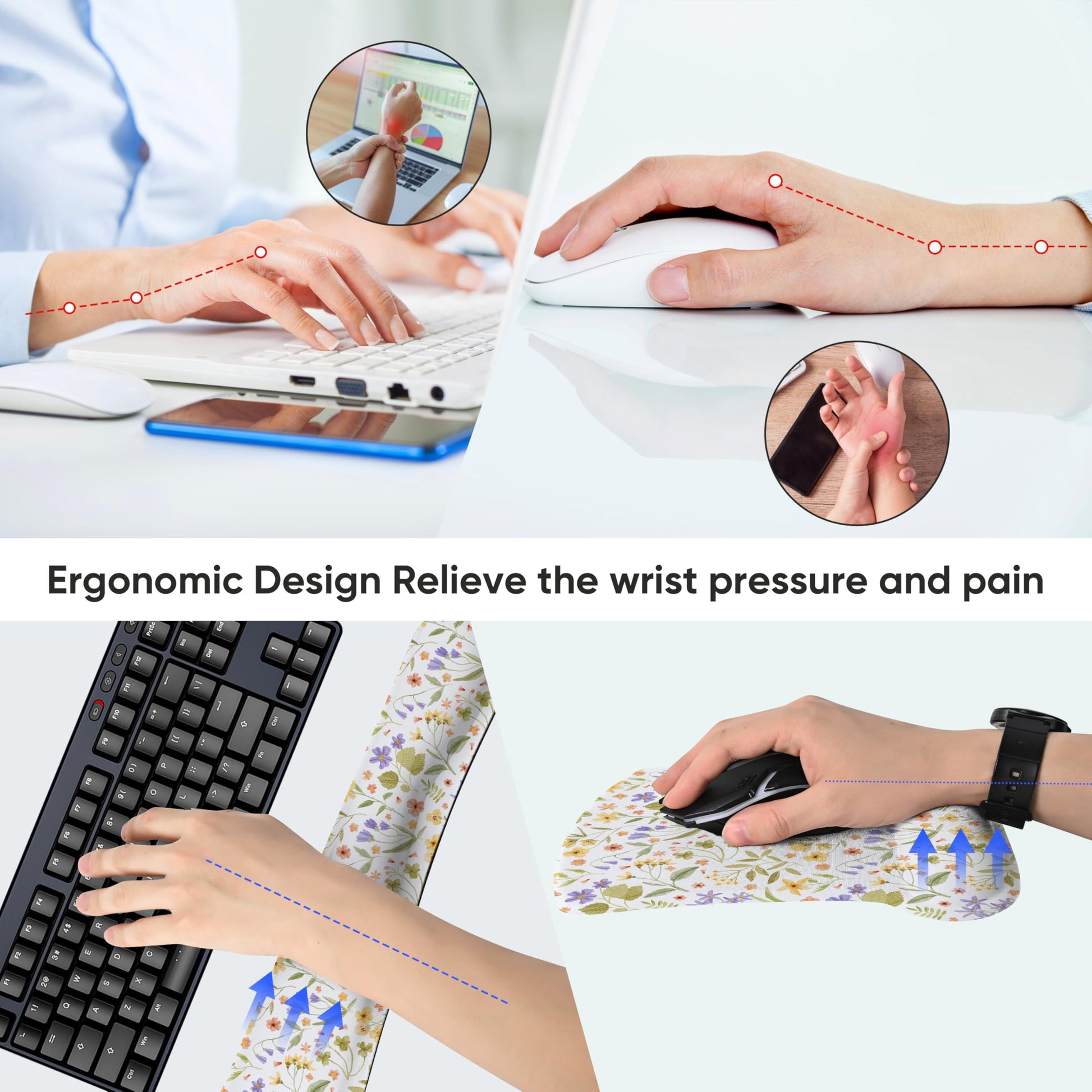 Prevent Injuries : The Memory Foam Set Improve Hand and Wrist Posture to Rest Your Hands Elbows and Shoulder on a Cushion Instead of the Desk and Avoid Joint For Long Hours of use on the Computer. Durable & Comfortable & Lightweight Design For Easy Typing & Pain Relief,Keeps Your Wrist From Getting Hurt, Such Like Rheumatoid Arthritis RA Repetitive Strain Injury RSI and Carpal Tunnel Syndrome CTS