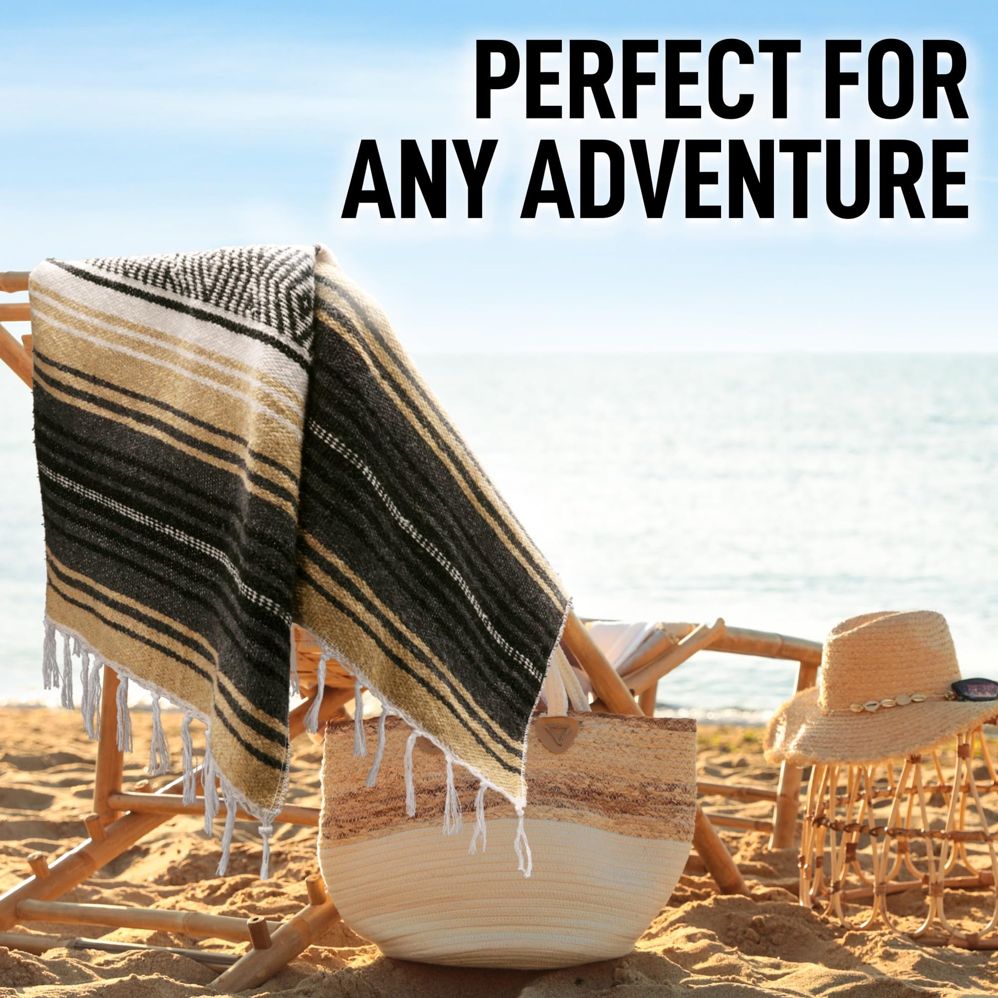 Authentic Large Handwoven Mexican Blanket - Soft Yoga Blankets - Durable Serape - Lightweight Falsa Blanket, Beach, Camping, Picnic, Equestrian Saddle, Outdoor Blankets 70"x50" - Sand