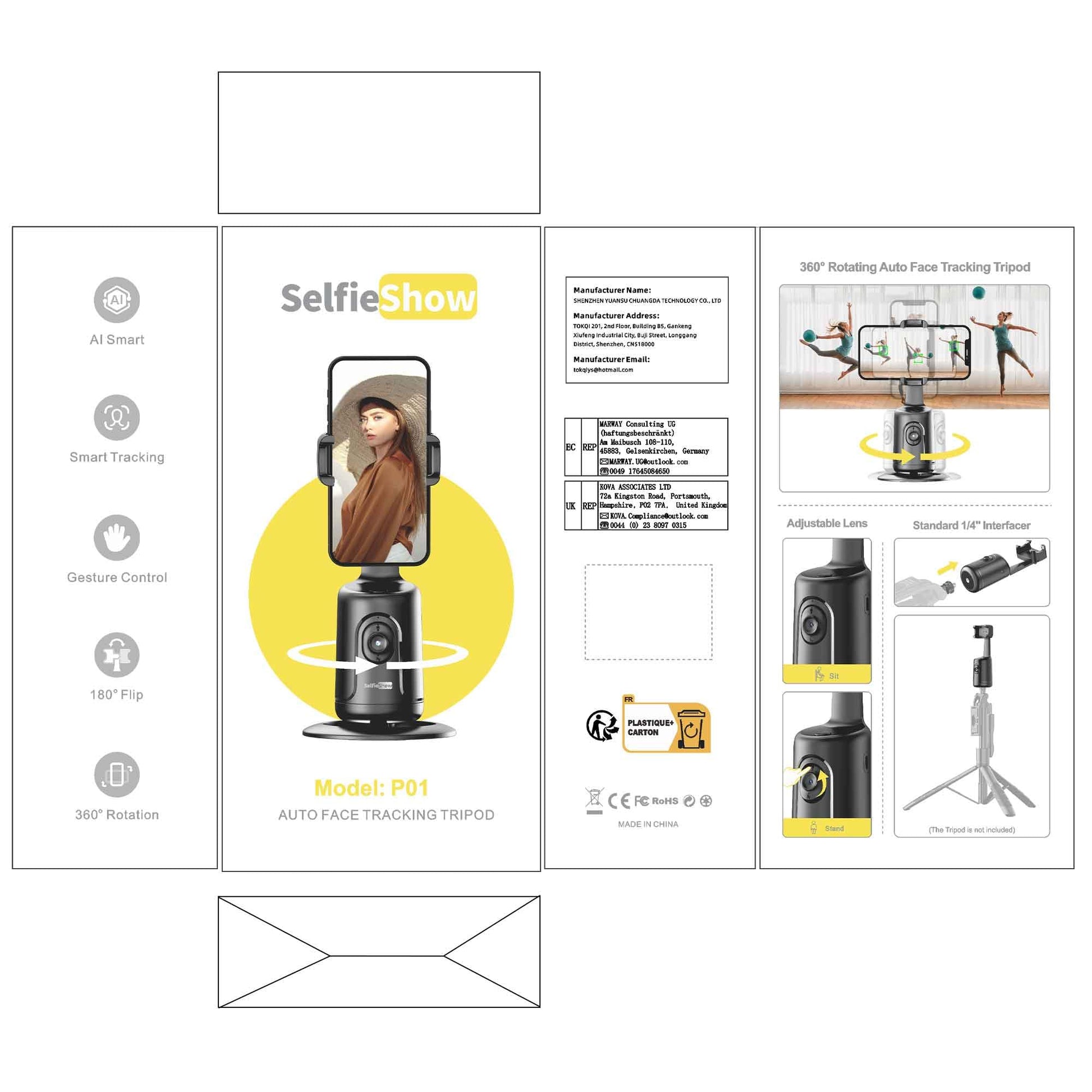 • 【Compatible Tripod】: Our SelfieShow 360 rotation smart face tracking tripod selfie has a univeral 1/4in port at the bottom compatible with most tripods, pefect for trip/travelling, portable smart cell phone mount for Vloggers/YouTubers/Group photoing/Adventures, video conference, product demo.