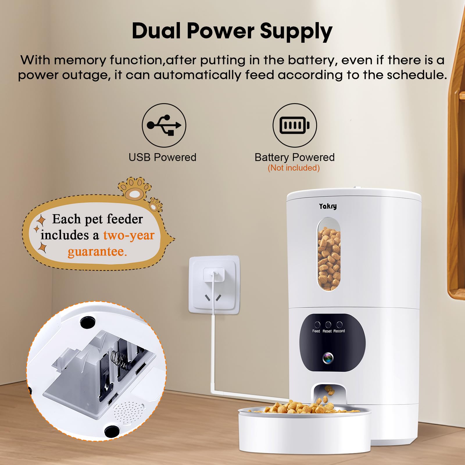 • Dual Power Supply and Memory Function Design: Automatic cat food dispenser can be powered by 3 batteries as a backup power source (not included in the package). We recommend inserting the batteries at the same time as the power source. Cat feeder with camera has a built-in memory function. Once the backup batteries are inserted, even if there is a power outage, the feeder can continue to dispense food according to the preset time, ensuring that your pet will have food to eat. We care about every furry friend