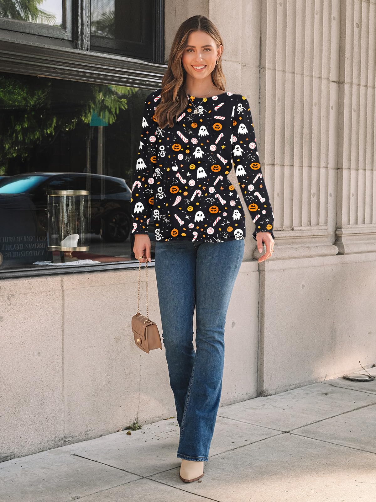 AUTOMET Long Sleeve Shirts Womens Halloween Fall Fashion 2025 Business Casual Tops Womens Trendy Dressy Blouses Cute Work Loose Fit Tee T Tshirts Ladies Tunic Clothes Outfit Clothing Legging Pumpkin