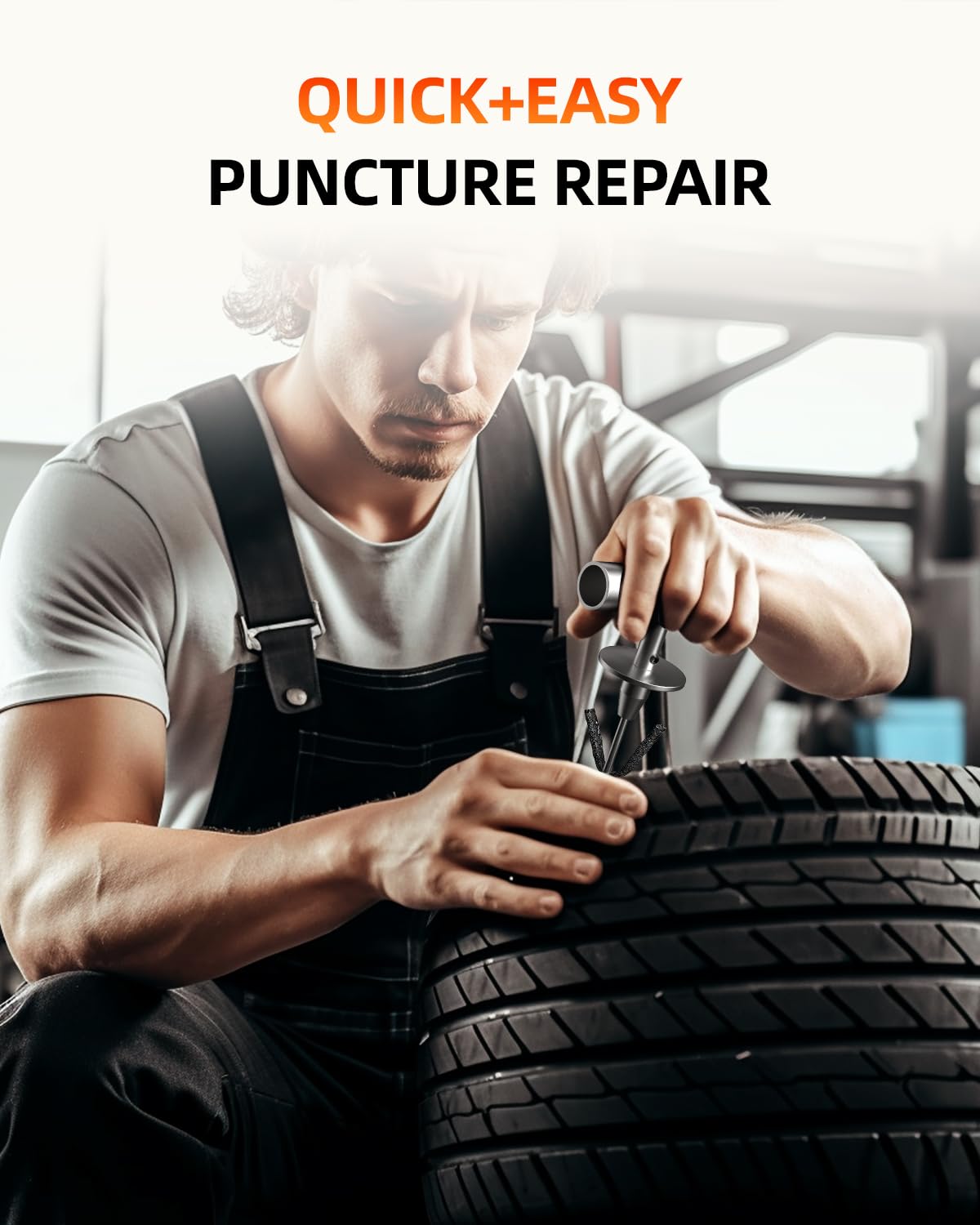 • [EASY TO USE ] - Our tire plug kits have everything you need to make repair easily. This kit with T-handle and spiral probe tool, so you can pierce into easily no matter what tires you repair. The portable storage case takes up very little space.