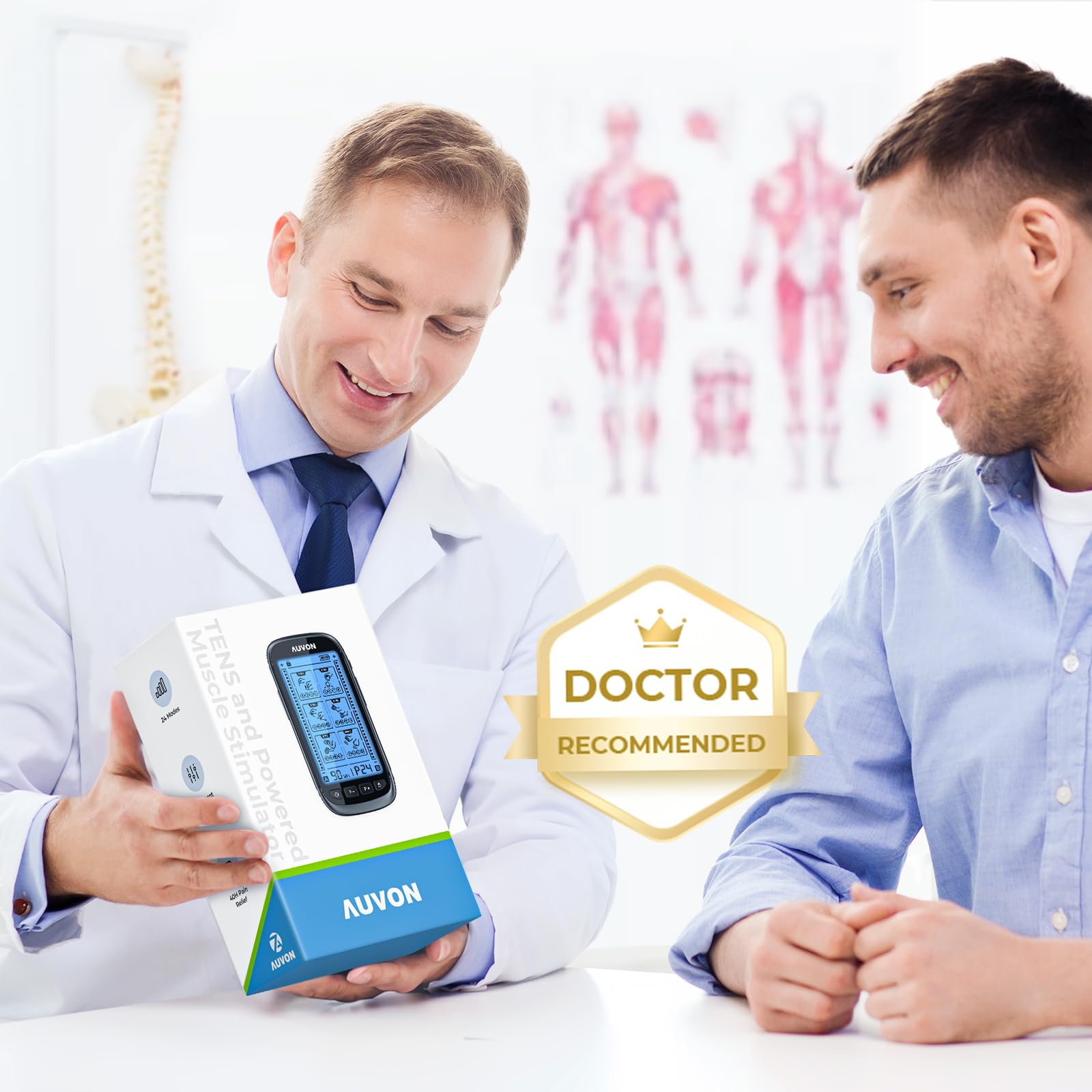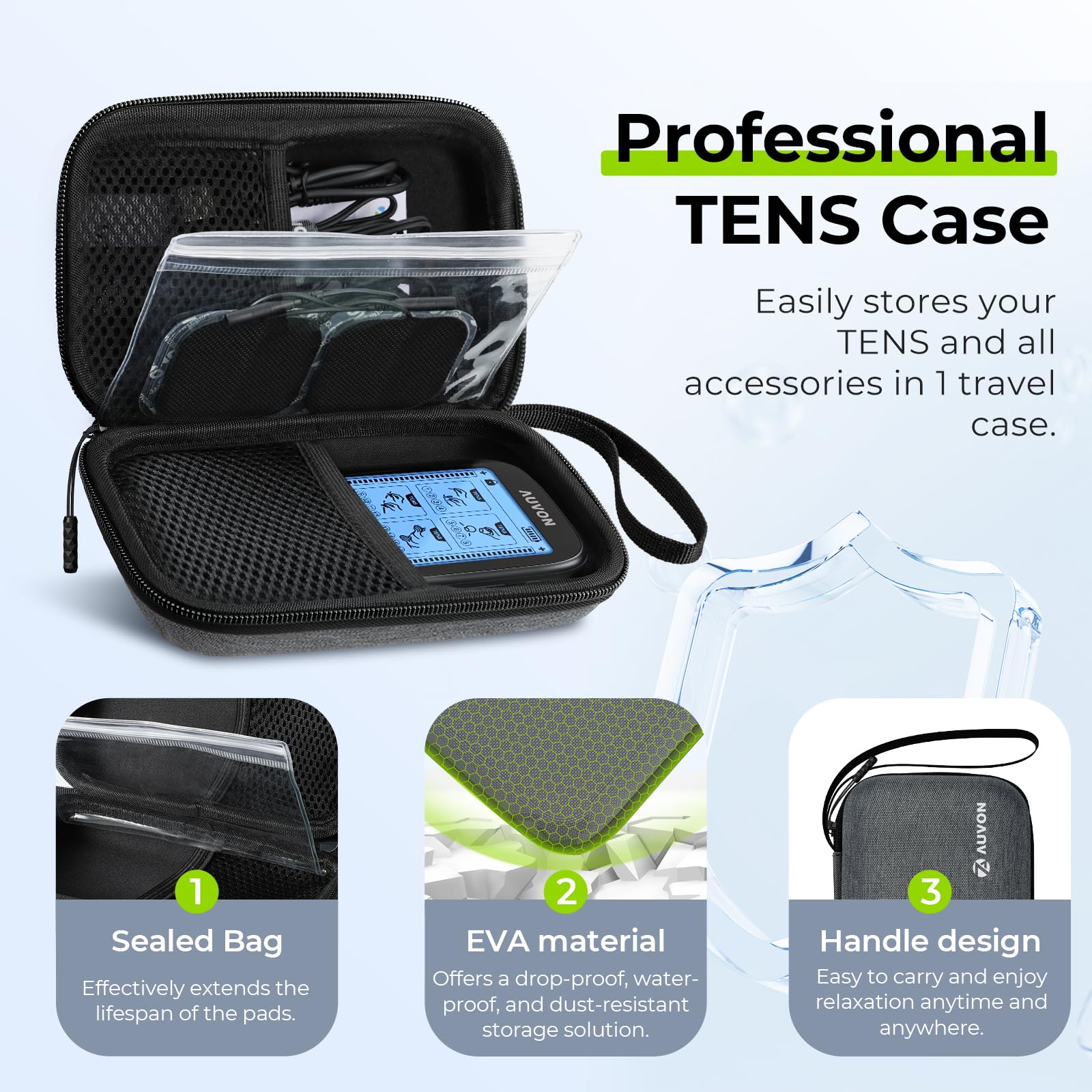 AUVON 3-in-1 TENS Unit Muscle Stimulator, Dual Channel Electronic Pulse Massager, TENS EMS Machine, 24 Modes Muscle Massager for Pain Relief Therapy, EVA Travel Case, 12 Pcs TENS Unit Electrodes Pads