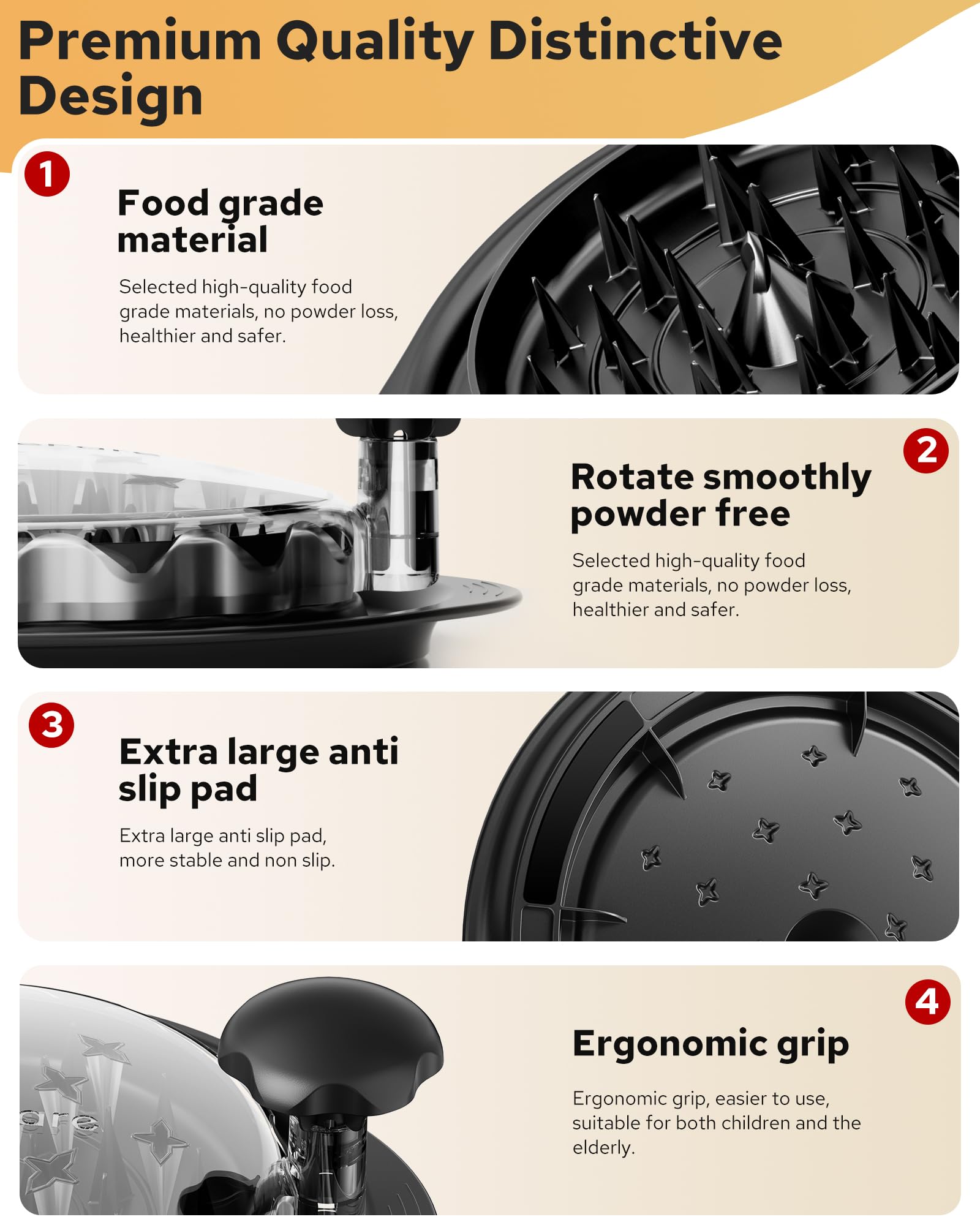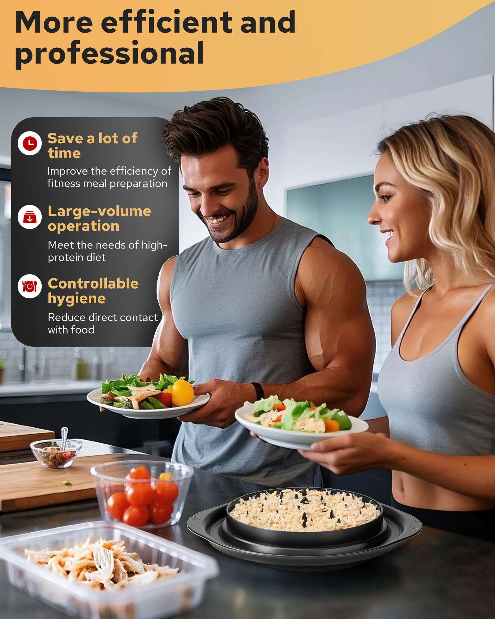 • ✅【Save Time and Energy Super Non-Slip】Special double handle top cover and strengthen the non-slip tray design, at the same time, the handle is very ergonomic, the force is uniform and the operation is more labor-saving, the actual test can be 3 seconds to complete the processing of 1 kg of chicken, the efficiency of the ordinary shredder 3 times, goodbye to the bare hands tearing the meat of the effort and embarrassment, the real cooking must-have
