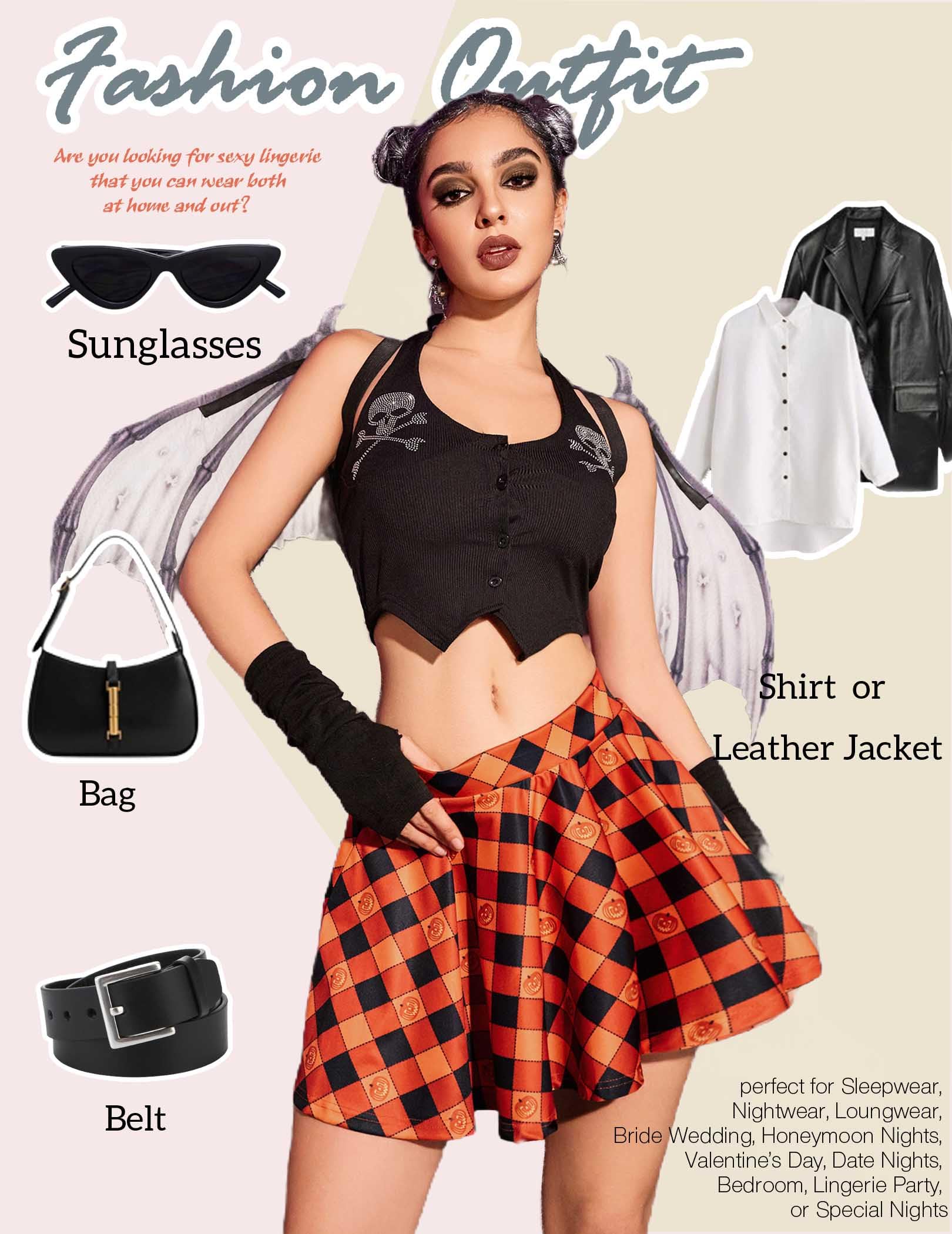 Avidlove Halloween Dress for Women Pleated Skirt School Girls CostumeA Line Mini Short Skirt (Pumpkin Plaid, Medium)