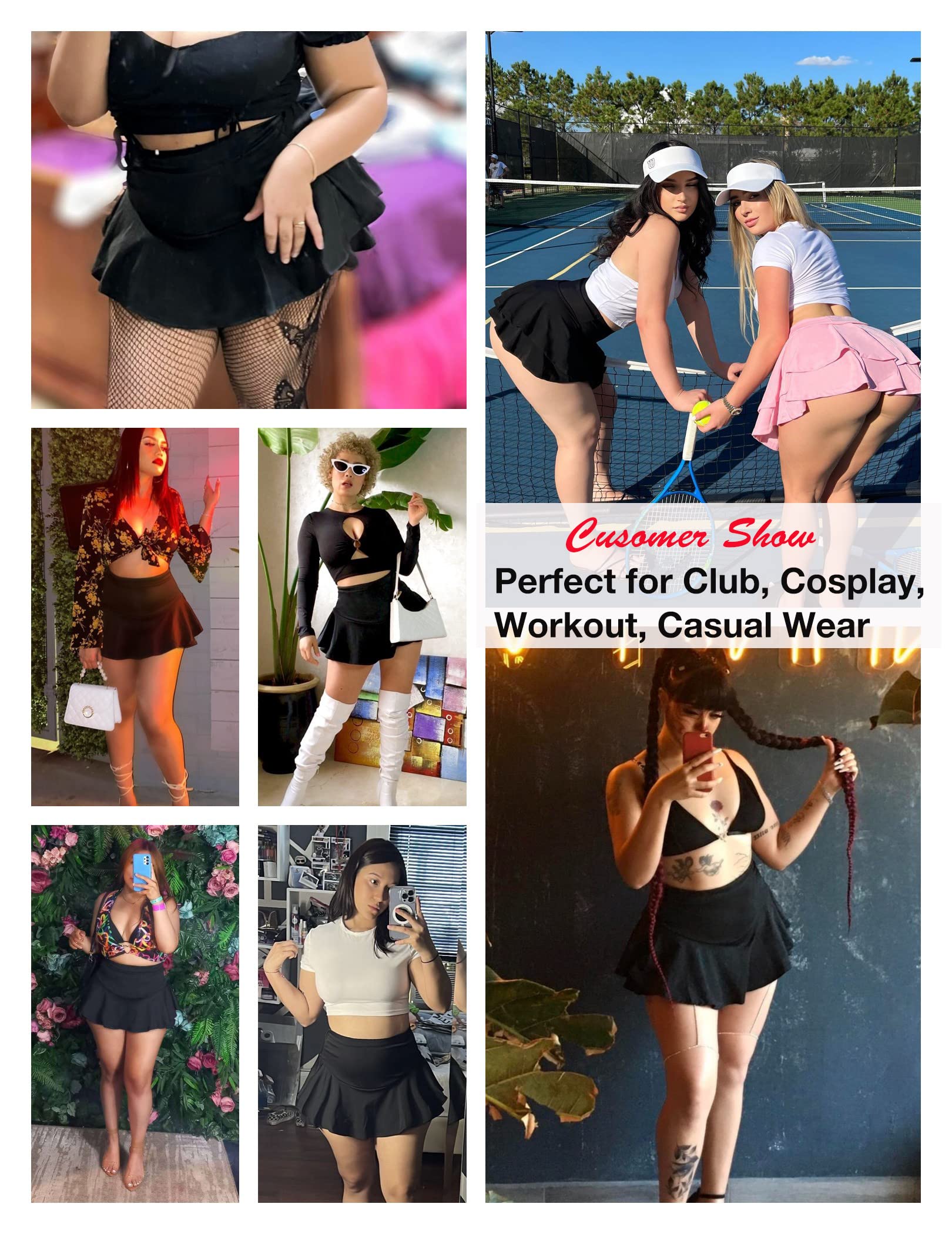 • Design: This short mini skirt features double layered ruffle hem design, A-line flared silhouette, which can show your flattering curve very well. You can pull the skirt up or down to adjust the length. Fun for special occasions
