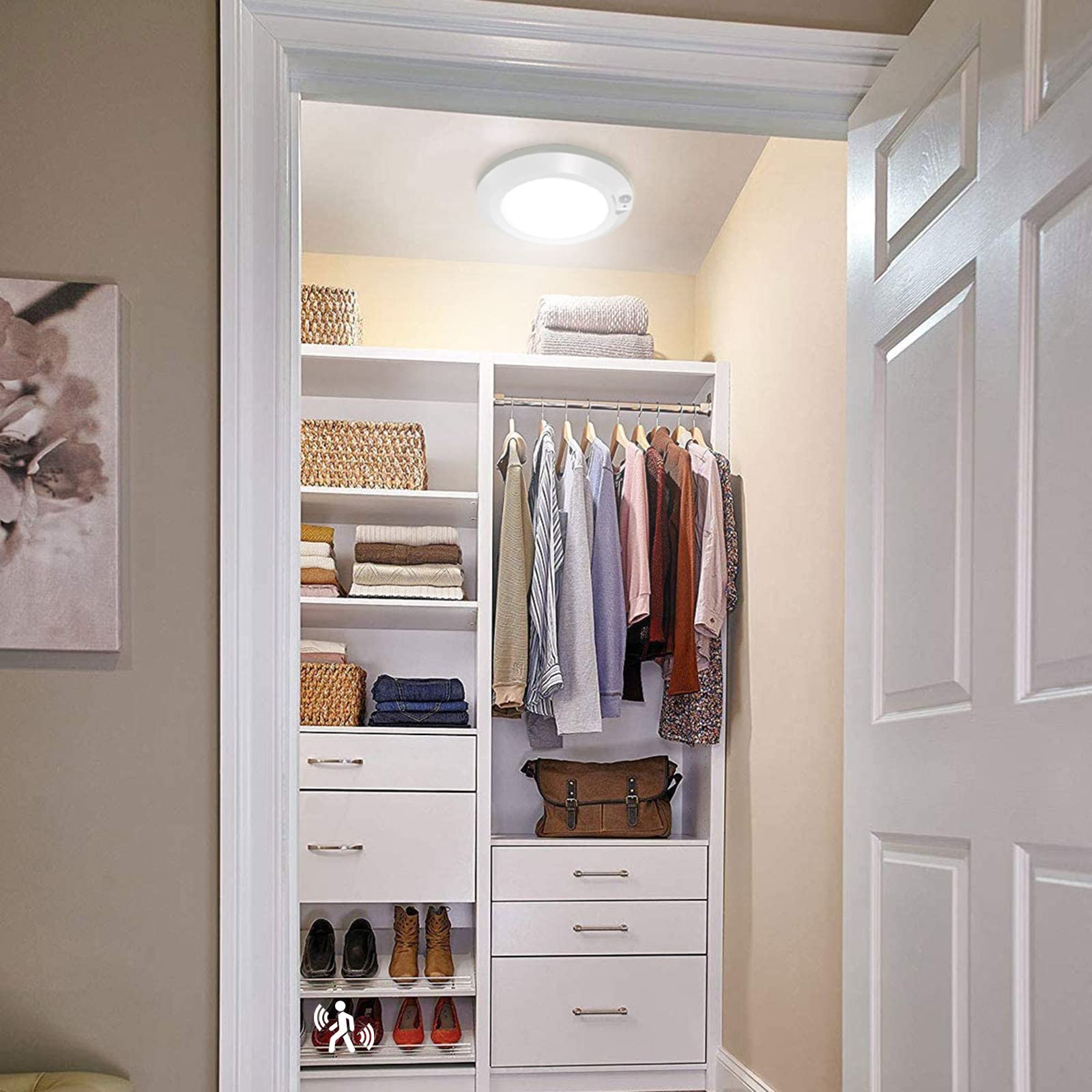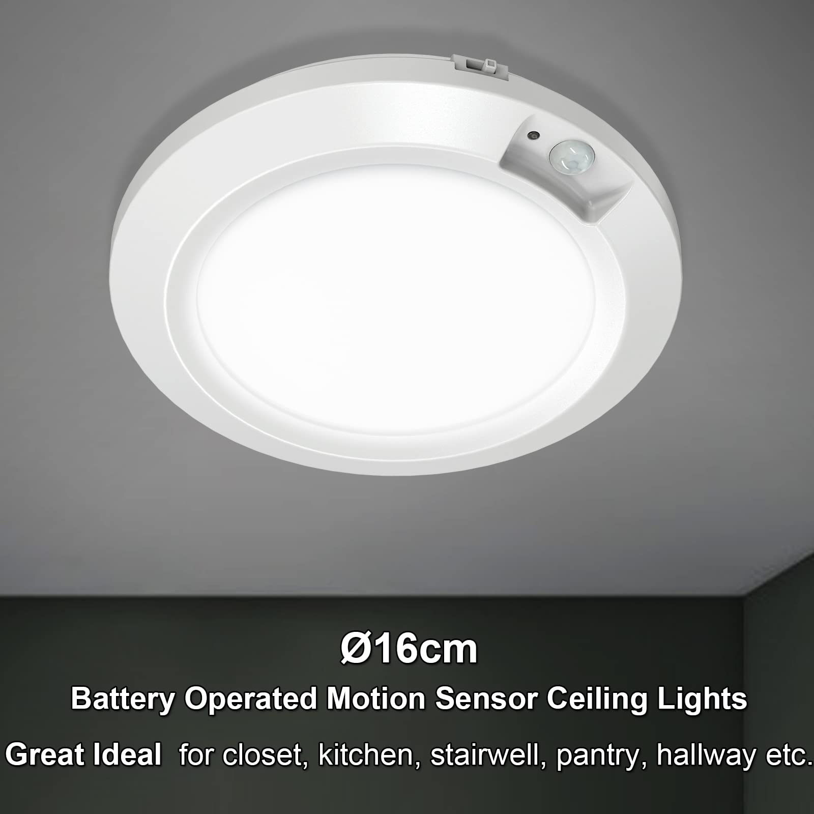 • Easy to Install & Wide Application: Wire no need, can be pasted with tape or fixed with screws, quickly and easily install it in less than 5 minutes. wireless Battery Powered LED ceiling lights are great for lighting up pantry, stairway, shed, porches, closets,atticand storage rooms.