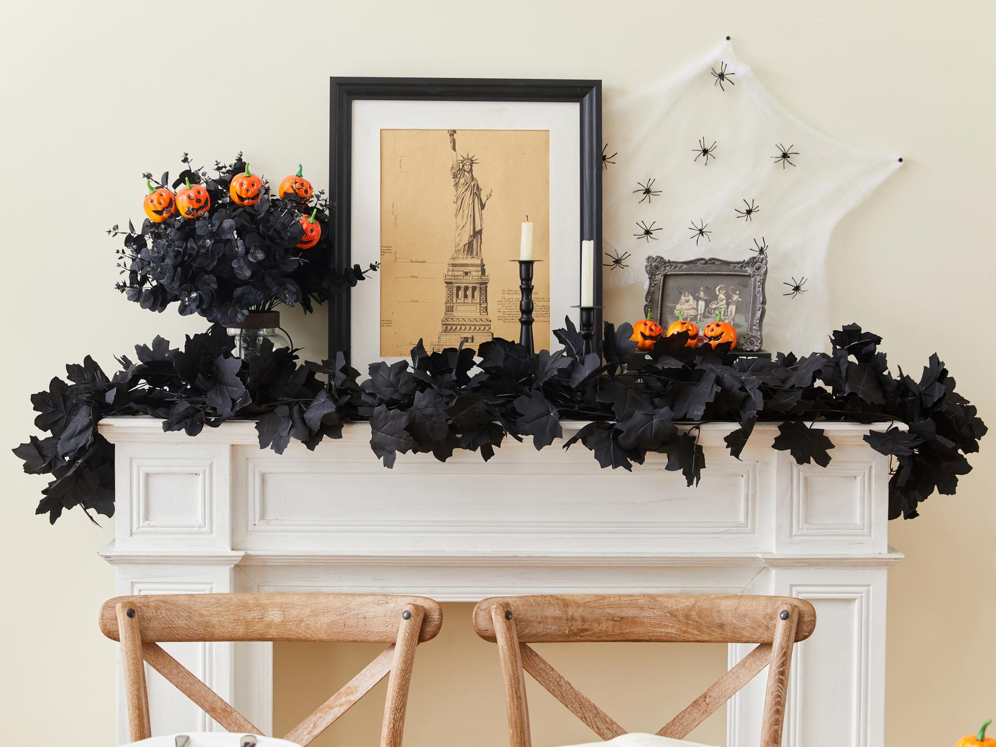AWARDSEN 13 FT Black Garland Halloween 2pcs Artificial Black Maple Leaf Garlands Fall Leaves Vines for Autumn Thankgiving Halloween Decoration for Home