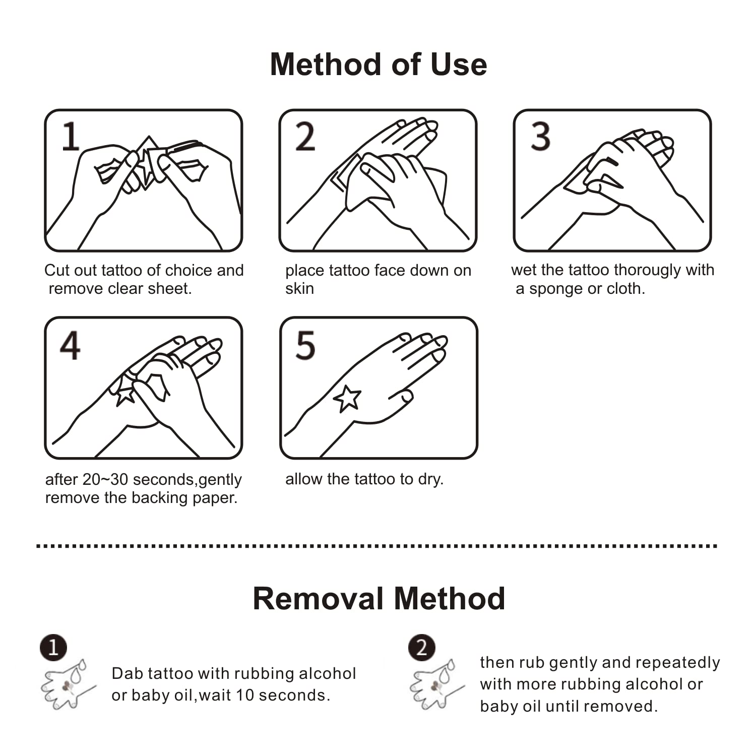 • Waterproof and long-lasting - These fake tattoos can last for 3-5 days, waterproof and sweaty, so you can swim, bathe or sweat without worry