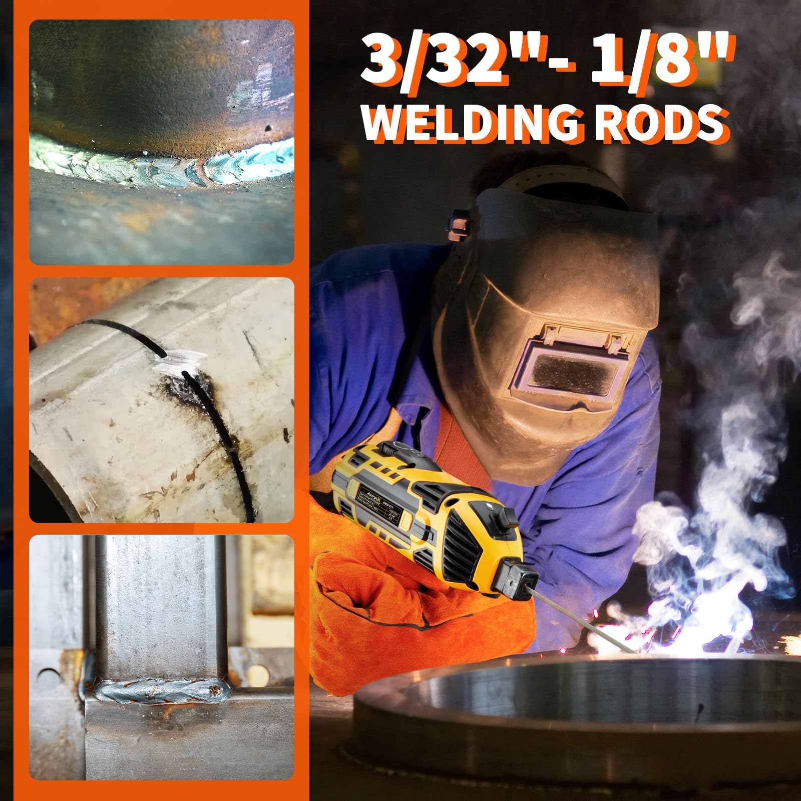 • SAFETY & STABLE + HIGH COMPATIBILITY - AwxryoX welder machine 110v has overheat protection, overcurrent protection and overload protection. Especially the cooling system, which greatly extends the life of the welding machine and effectively protects the internal circuit of the welding torch from damage. Guaranteed compatibility with 3/32“- 1/8” (2.5-3.2mm) welding electrodes, welding rods in this size range can be used at will. present 10pcs welding electrodes no need to buy another one