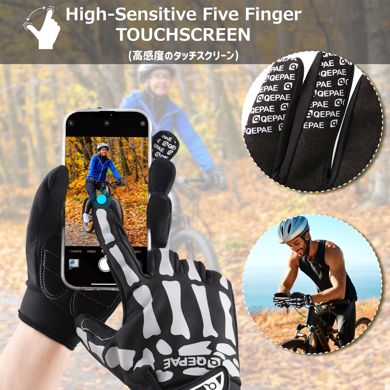 • Skeleton Design: The skeleton gloves are coated with white skeleton bones, make the whole appearance look uncanny and creates a ghostly atmosphere. The printed skull pattern make you different and become a cool and stylish rider