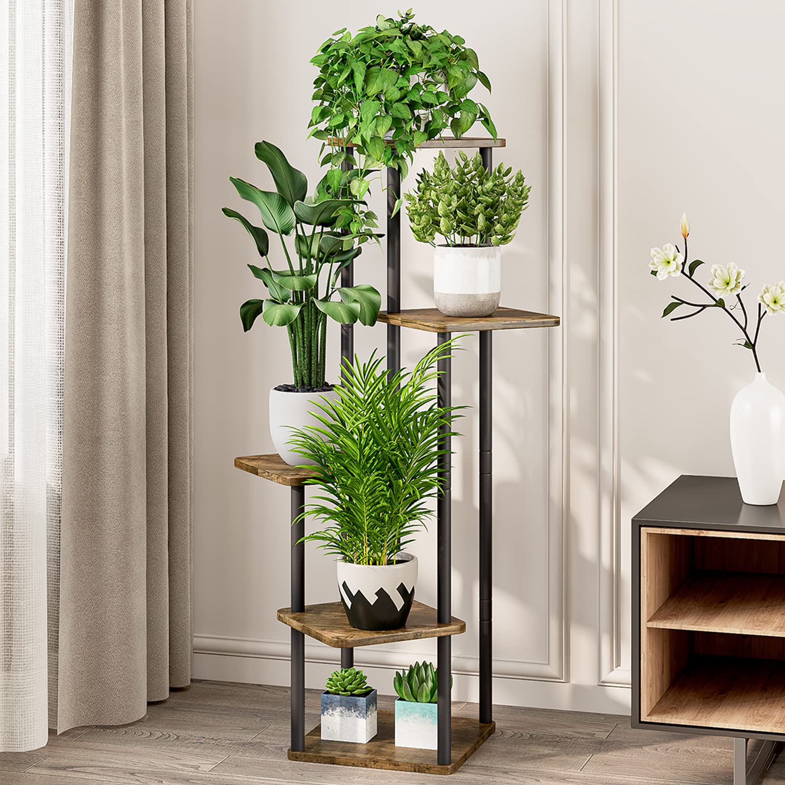 • 【5 Tier Tall Plant Shelf】The Indoor Plant Stand includes 5 shelves, 23.54(L) x 23.54(W) x 41.85(H) inches,perfect for flower pots of various sizes and shapes, each plant can soak up sufficient sunlight to thrive. In addition to showcasing your lovely plant, you can also use it for your pictures or memorable knickknacks.