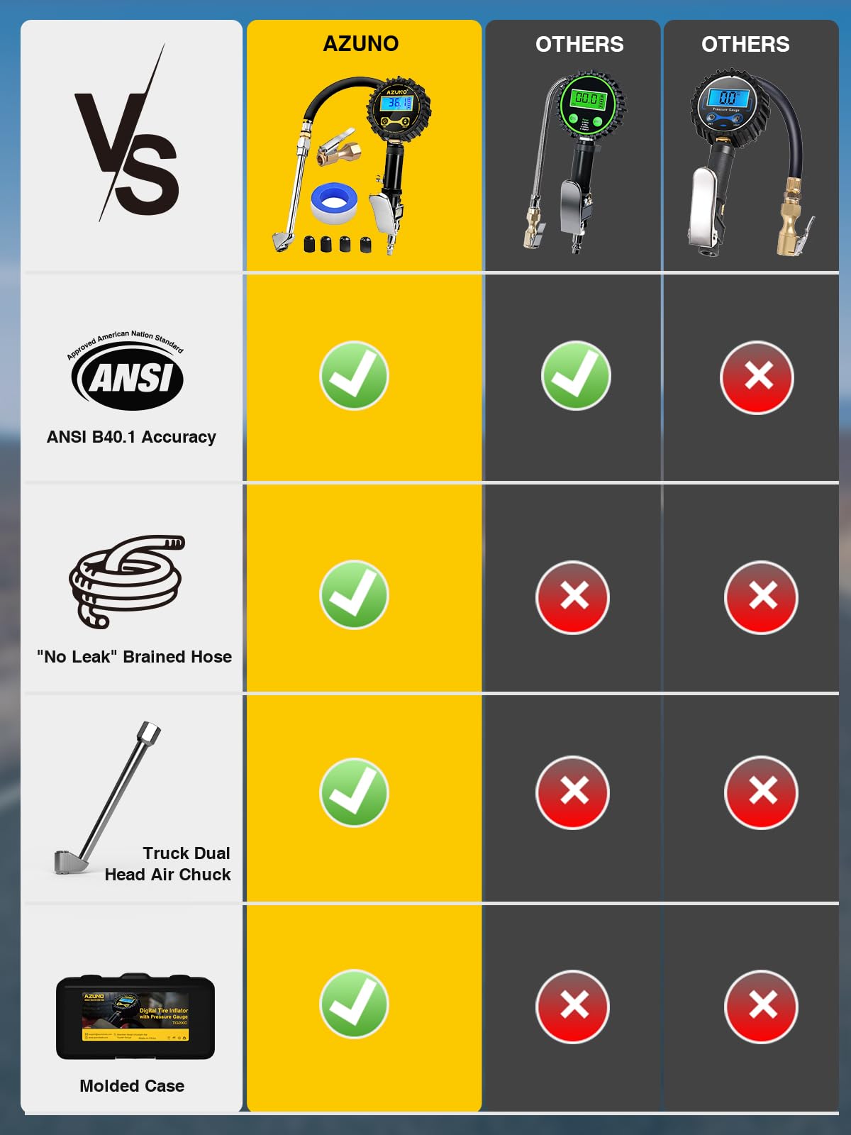 • 【Accurate Digital Tire Gauge】The digital pressure gauge always returns a stable reading within 1% of the exact pressure of your tire by incredible 0.1 display resolution. No more guessing!