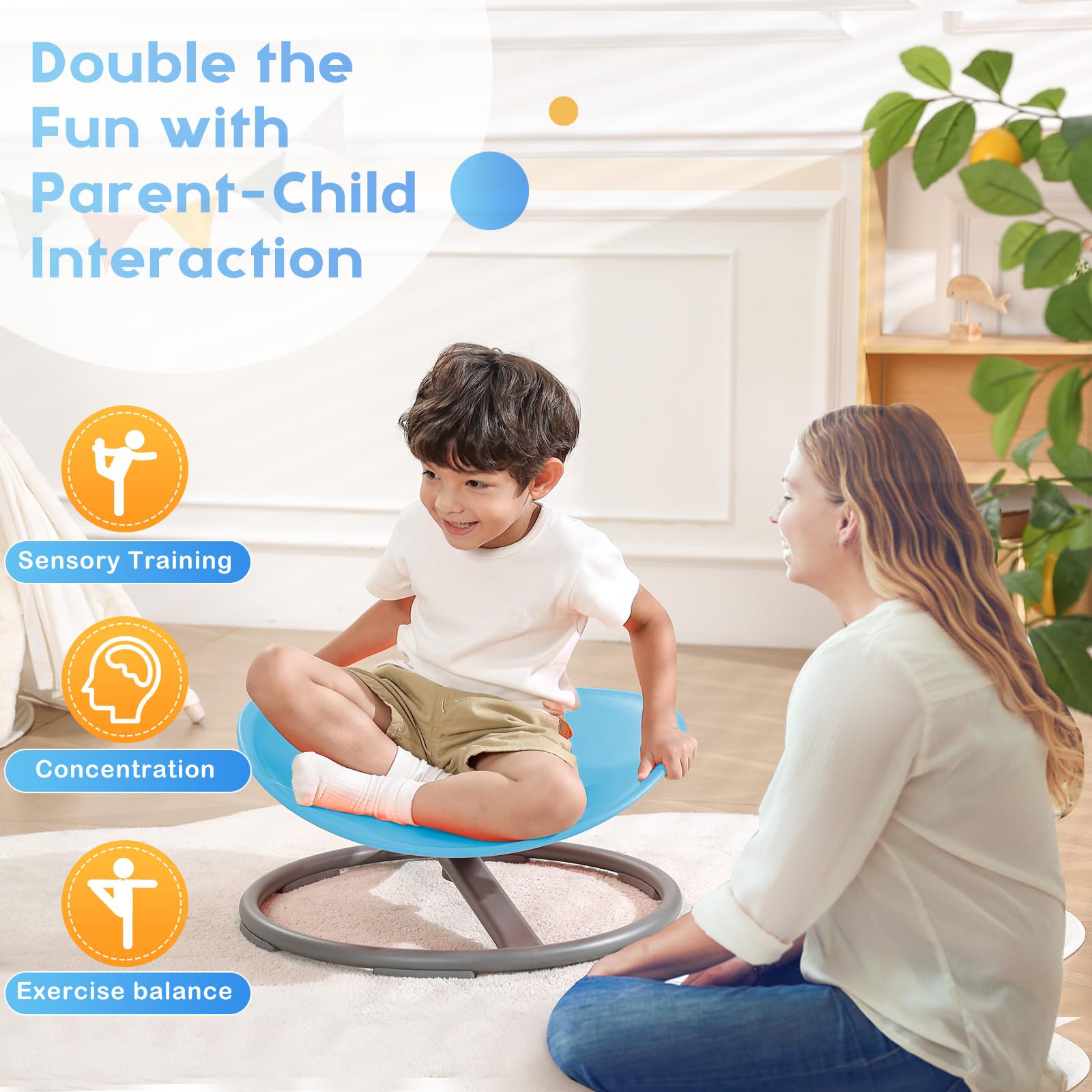 • Encouraging Active Play: Promote physical activity and outdoor fun with our sit and spin toy for kids. It's a fantastic alternative to screen time, fostering healthy habits and helping children develop essential motor skills, coordination, and balance. Perfect for birthdays, Christmas, and other special occasions, our sit and spin toy is adored by children, including those with autism.